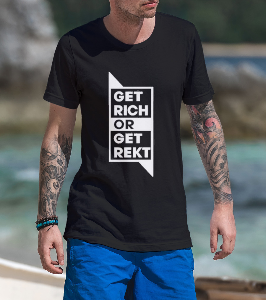 The Get Rich Or Get Rekt T-shirt is designed for everyday wear and a consistent fit. Fabric is pre-shrunk ring-spun cotton with durable stitching. See the size chart below for exact measurements.