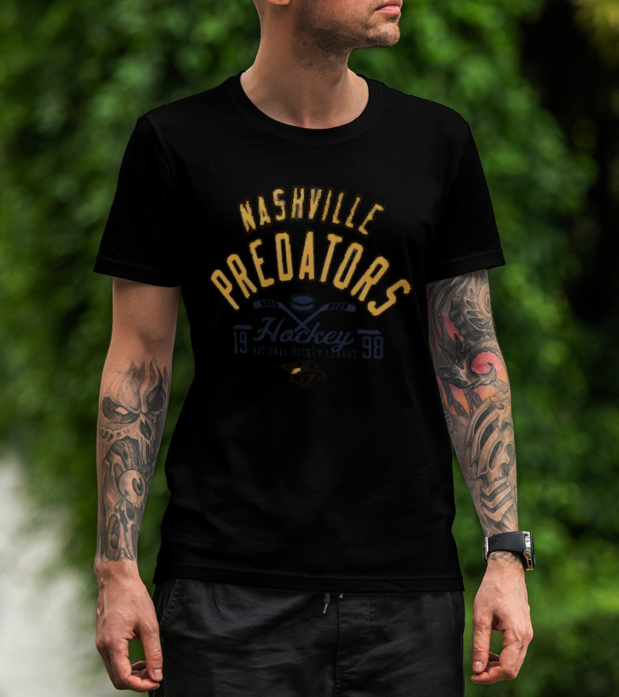 The Nashville Predators Hockey Established 1998 T-shirt is designed for everyday wear and a consistent fit. Fabric is pre-shrunk ring-spun cotton with durable stitching. See the size chart below for exact measurements.
