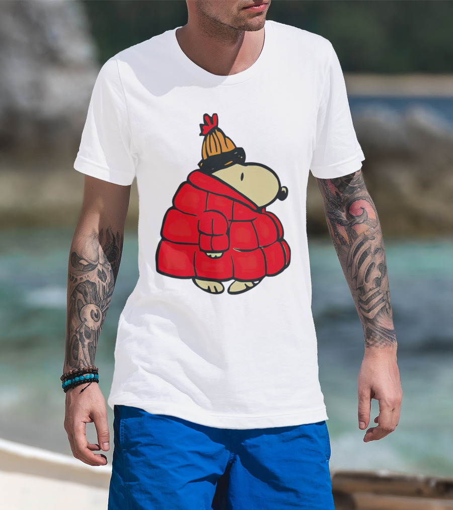 Snopy Puffer Coat Winter Christmas Beanie T-Shirt
