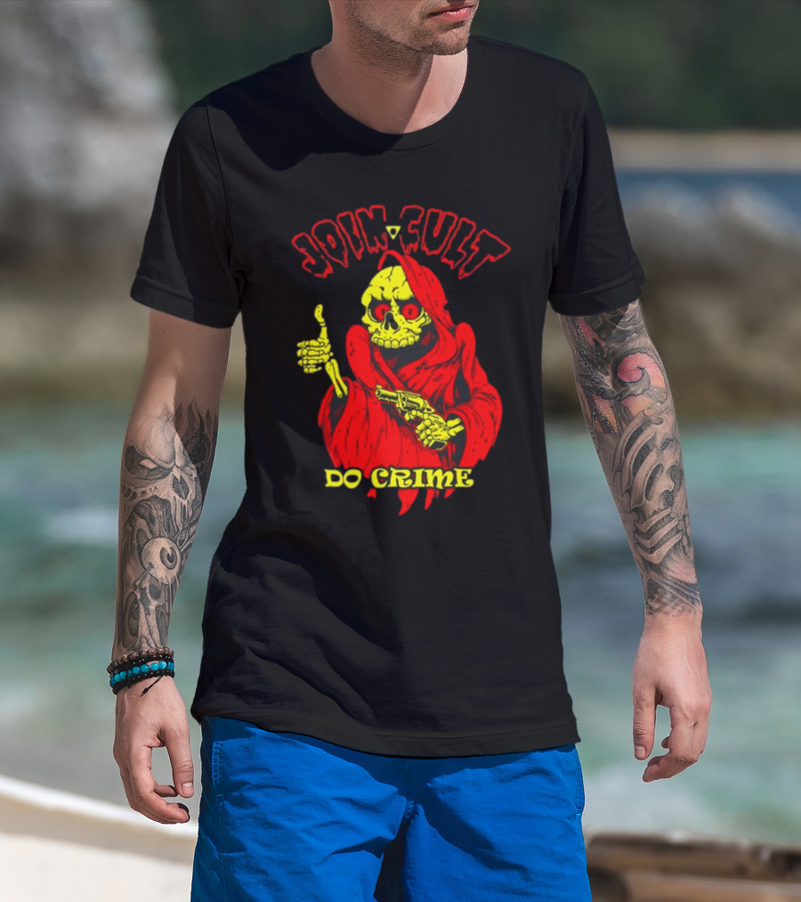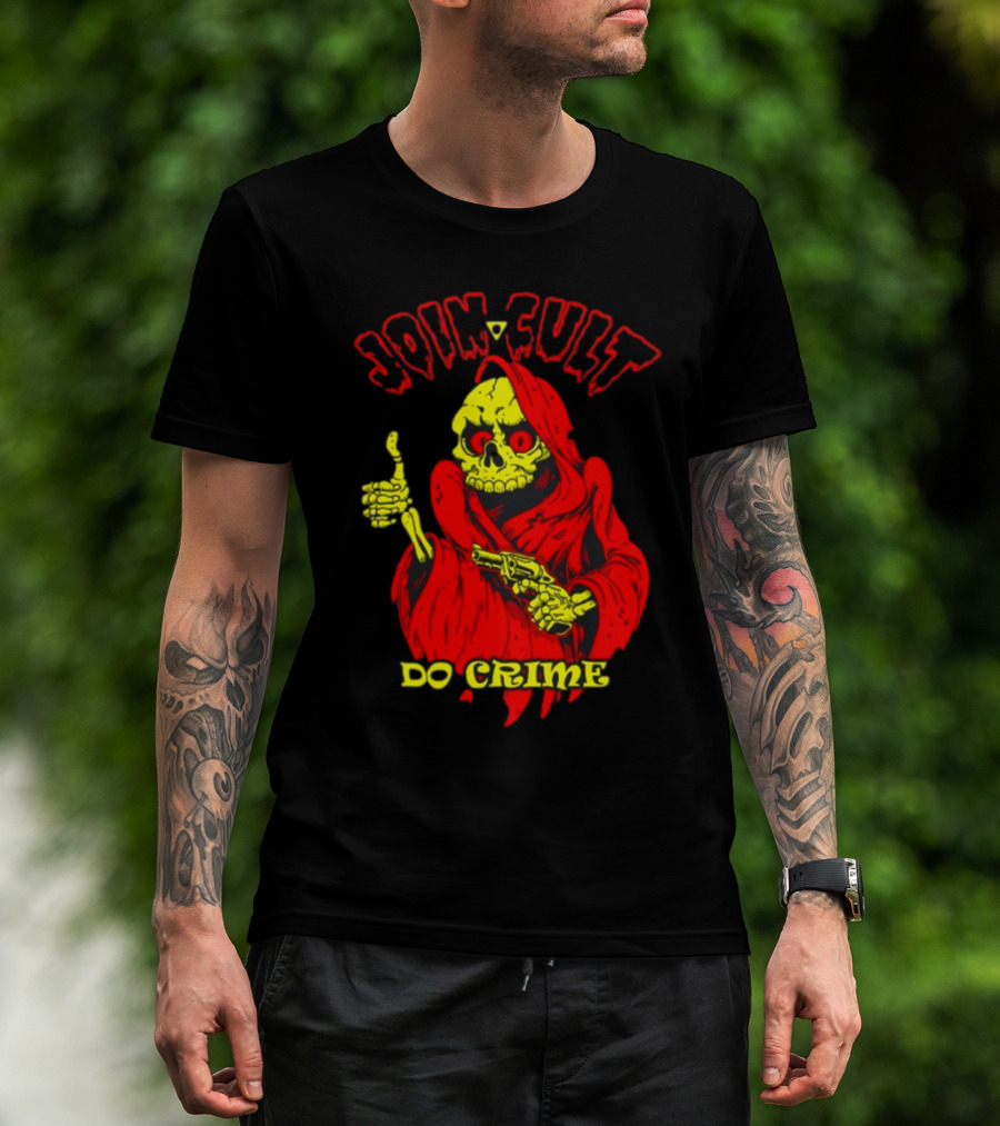 Join Cult Do Crime Grim Reaper Skeleton With Gun T-Shirt