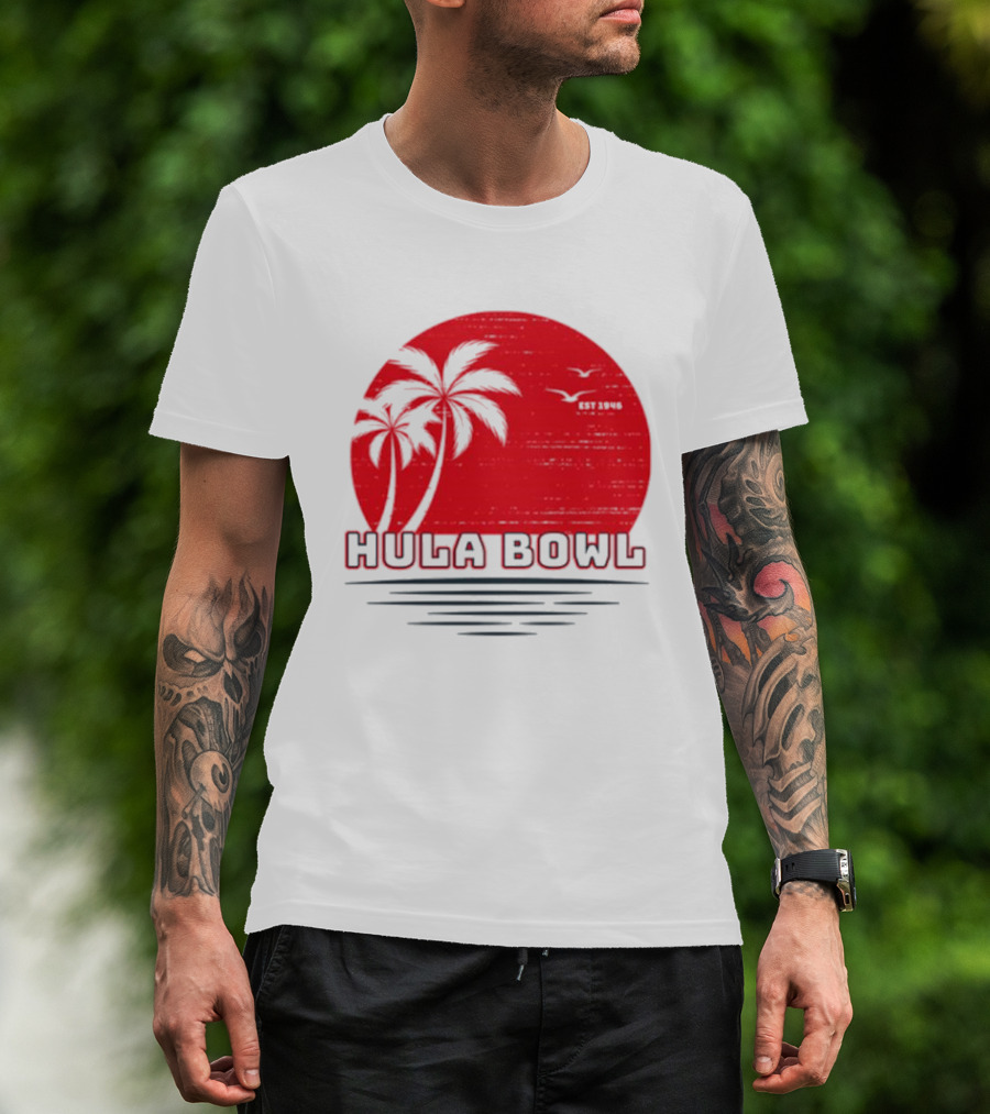 Hula Bowl Established 1946 Red Sunset With Palm Trees T-Shirt