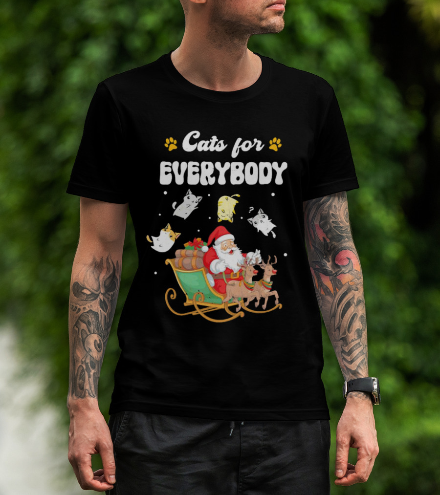 Santa With Flying Cats And Reindeer Sleigh For Everybody Christmas T-Shirt