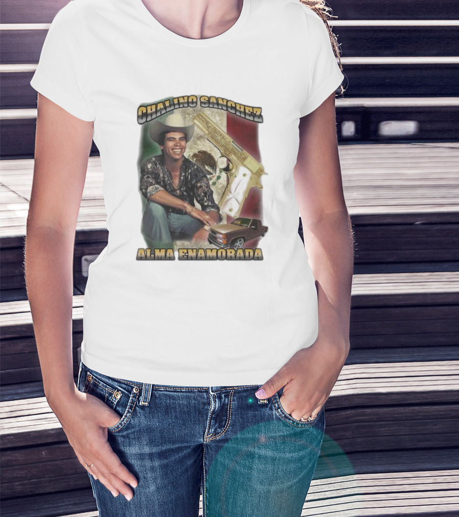Chalino Sanchez Alma Enamorada Mexican Flag Gold Gun Pickup Truck T-Shirt