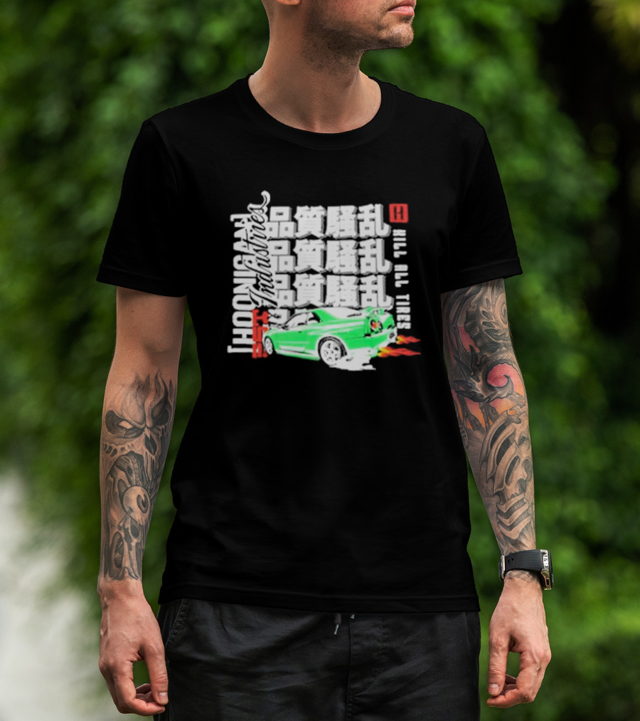 The Hoonigan Industries Kill All Tires Green Car T-shirt is designed for everyday wear and a consistent fit. Fabric is pre-shrunk ring-spun cotton with durable stitching. See the size chart below for exact measurements.