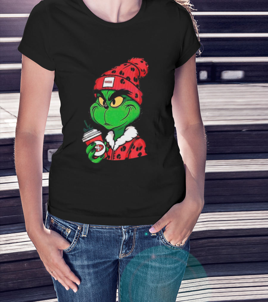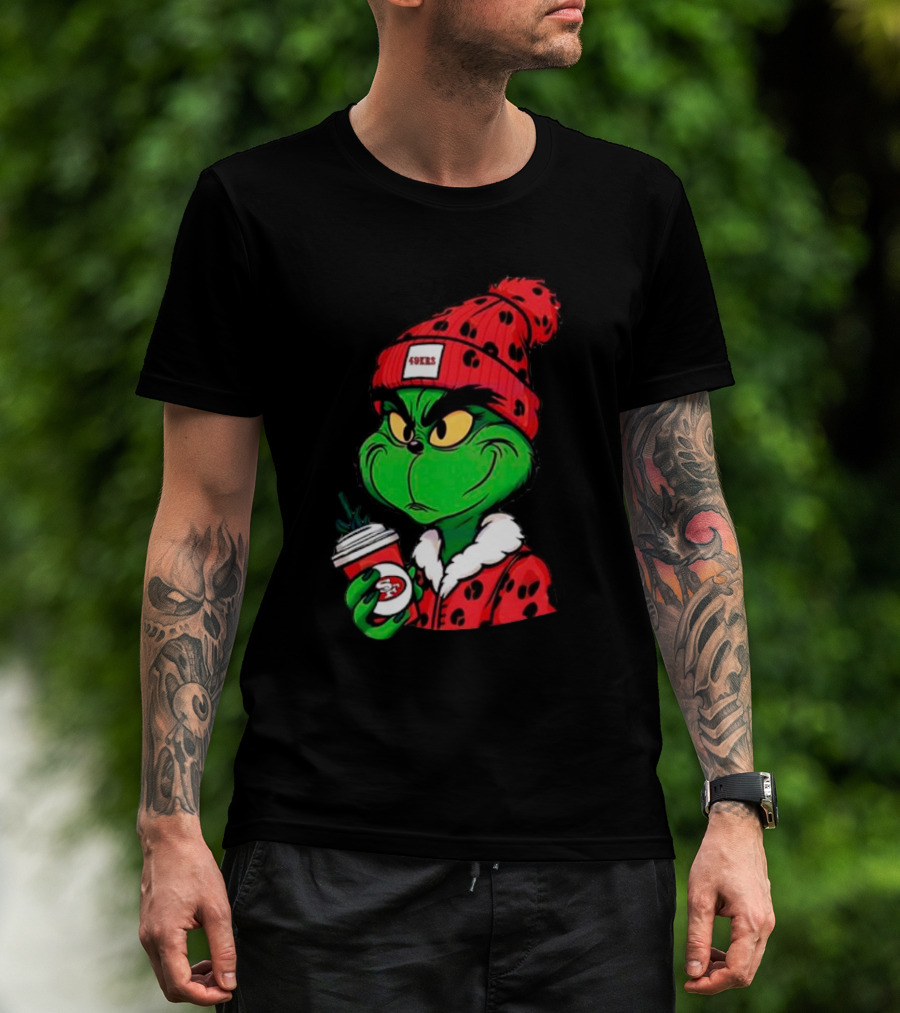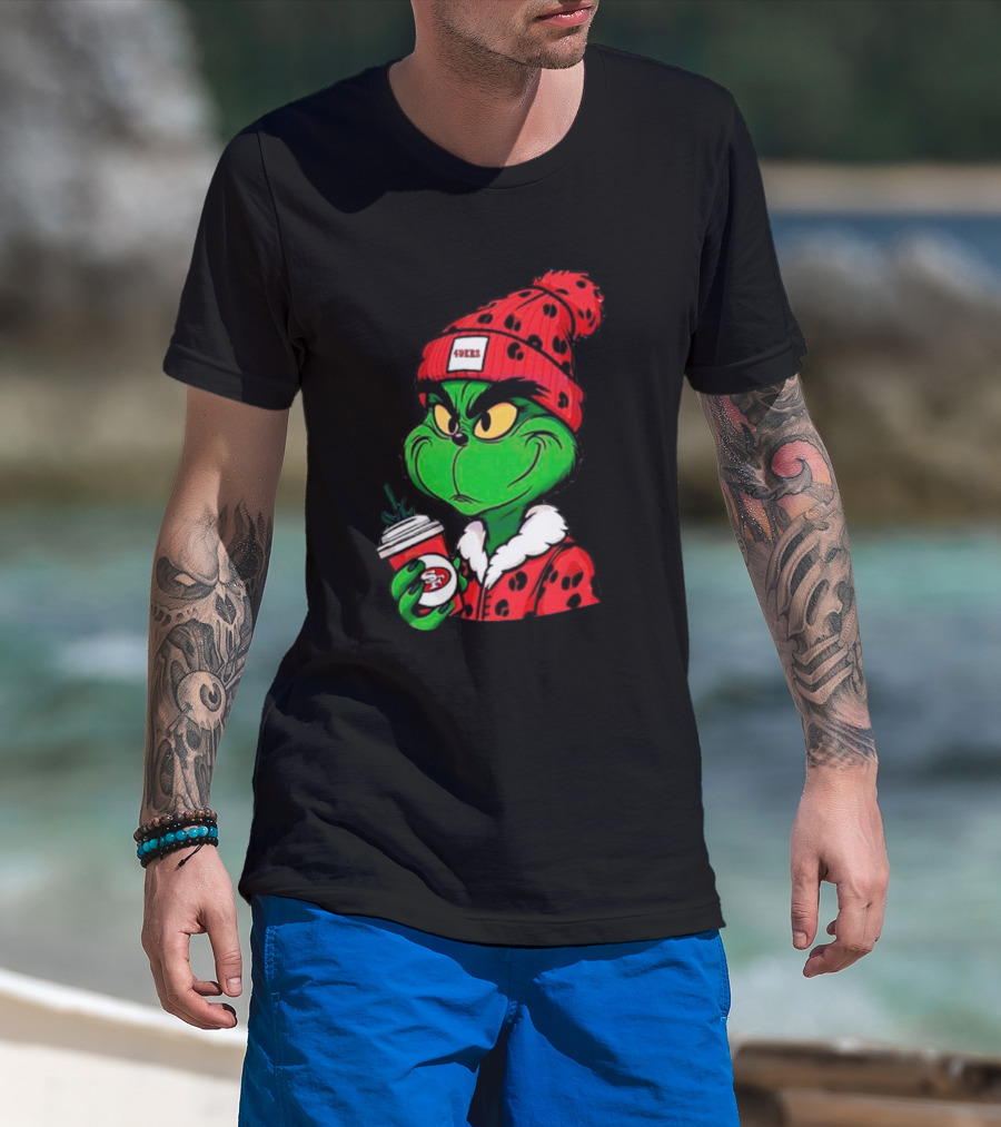 Grinch Boujee San Francisco 49ers Coffee Beanie Christmas 49ers T-Shirt