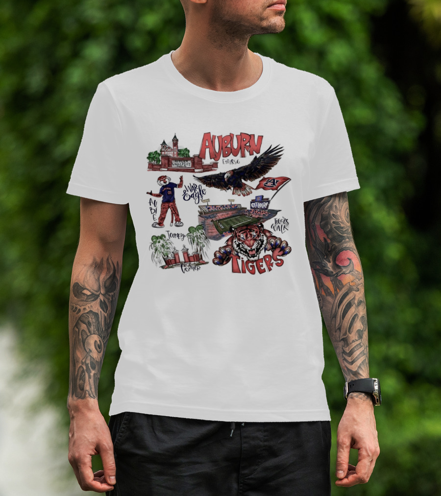 Auburn Tigers Toomer's Corner War Eagle Aubie Mascot Est 1856 Football Stadium T-Shirt