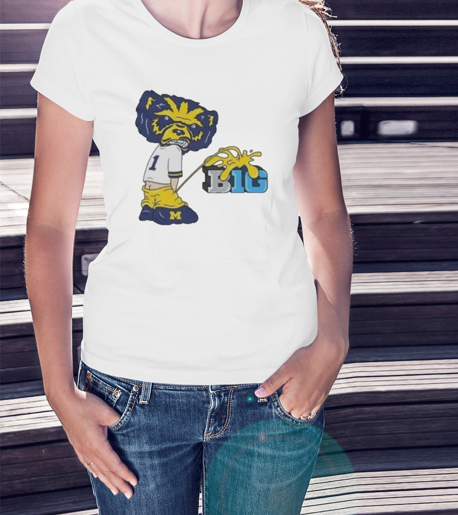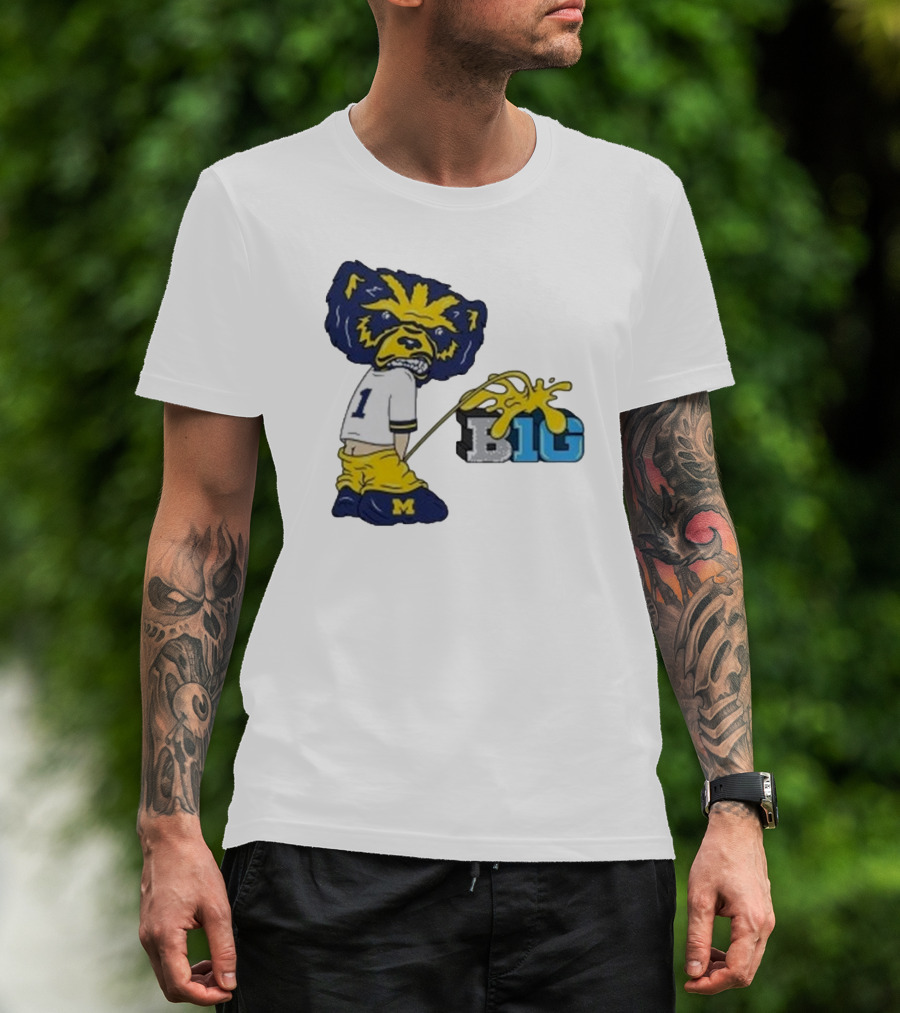 MI Wolverine Mascot Pissing On Big Ten Logo T-Shirt