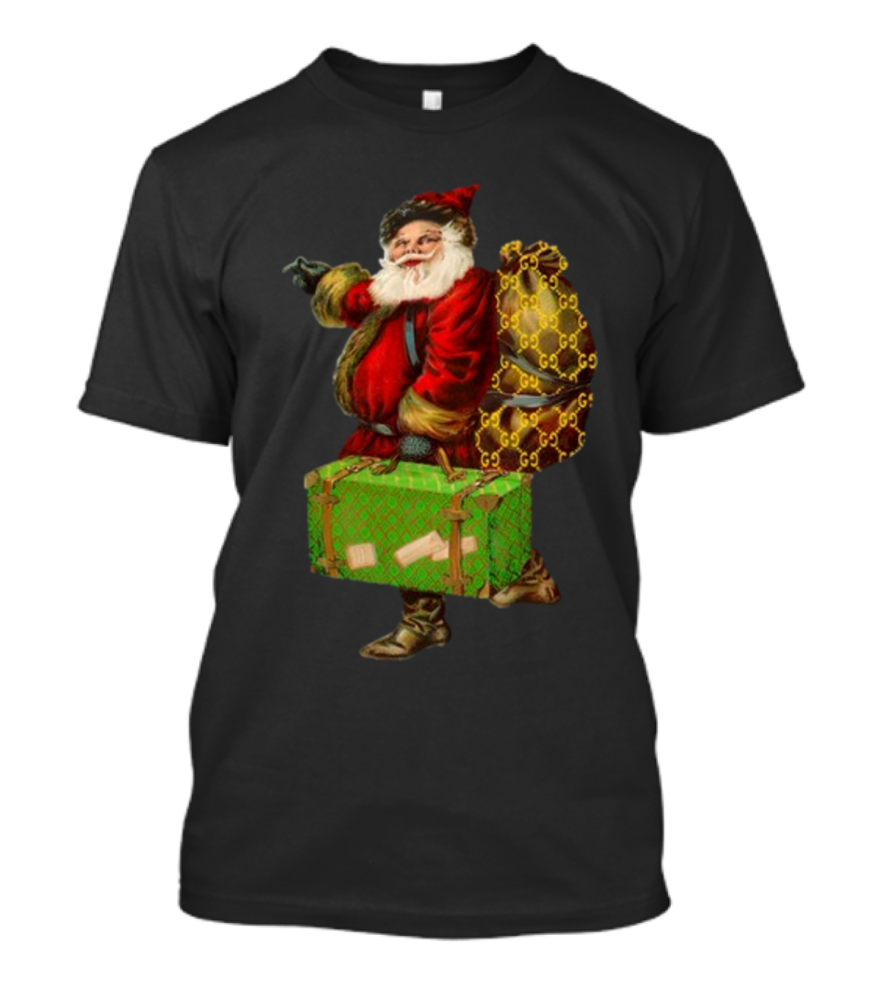 The Santa with Chic Designer Style Backpack T-shirt is designed for everyday wear and a consistent fit. Fabric is pre-shrunk ring-spun cotton with durable stitching. See the size chart below for exact measurements.