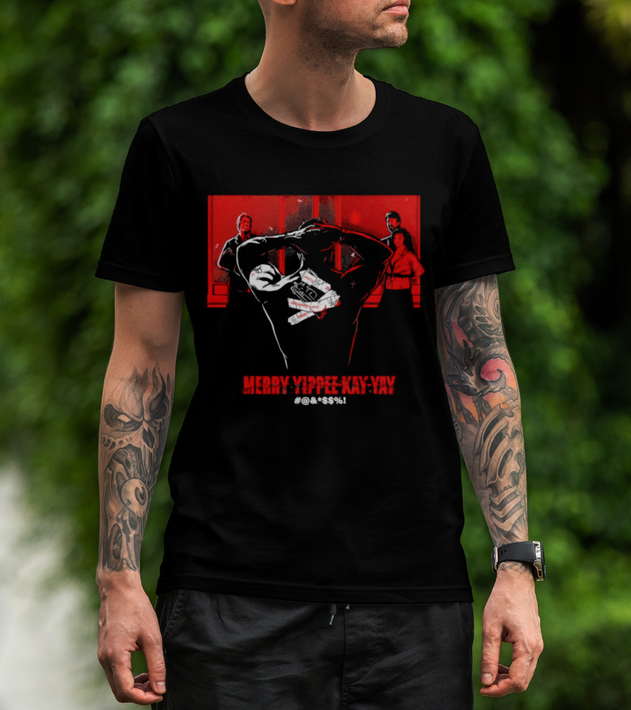 Merry Yippee Kay Yay Die Hard Christmas Scene With Characters And Explosives T-Shirt