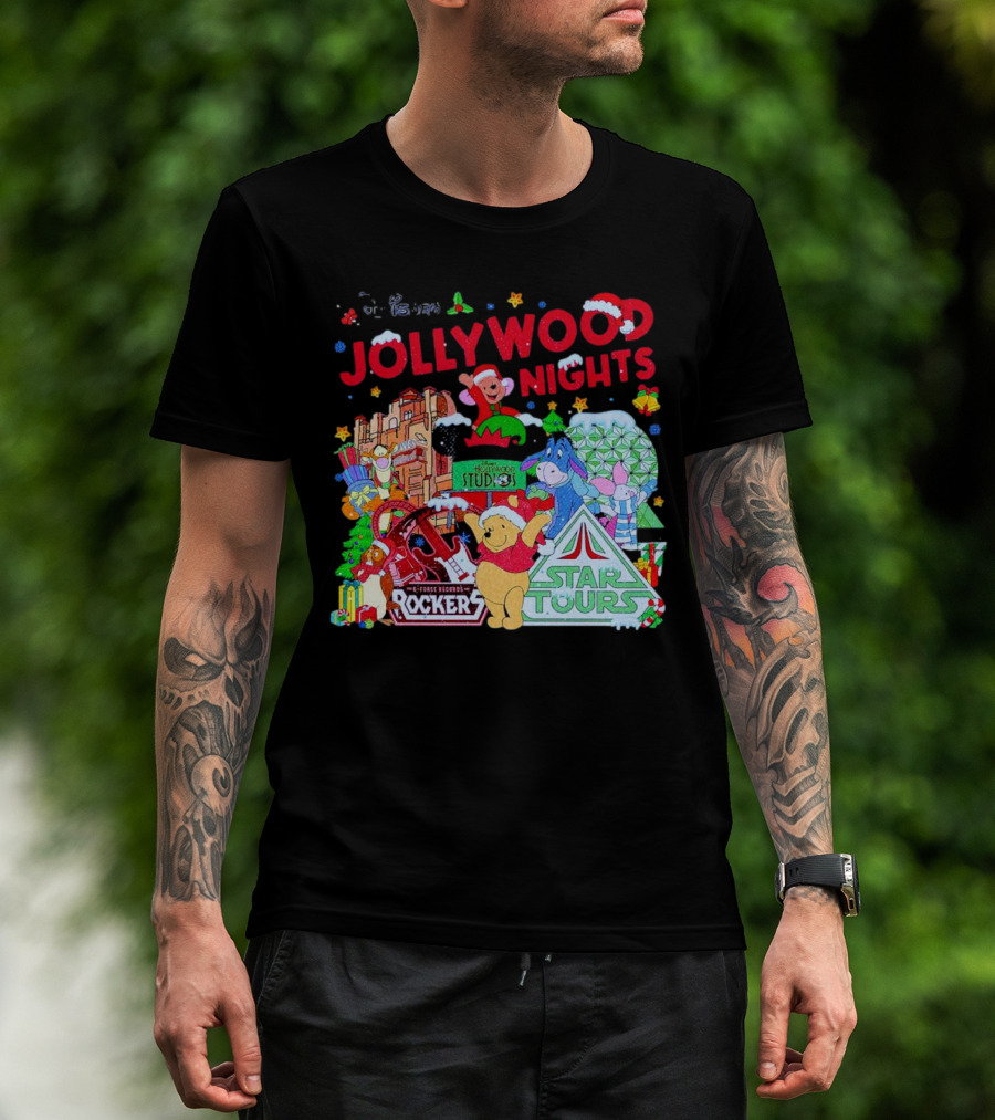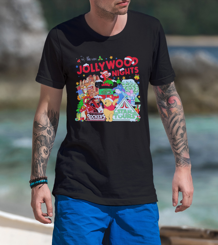 Disney Jollywood Nights Christmas Winnie The Pooh Eeyore Rockers Star Tours T-Shirt