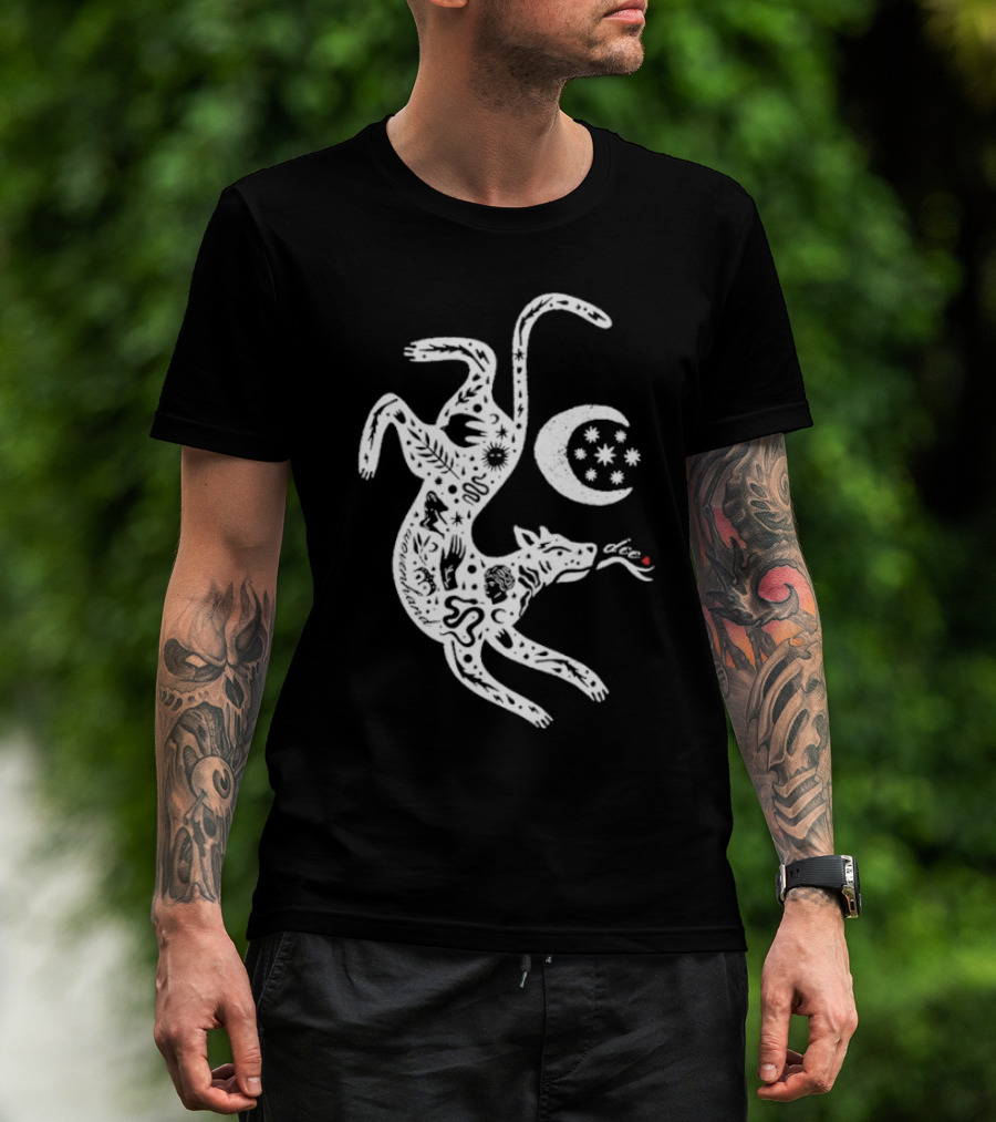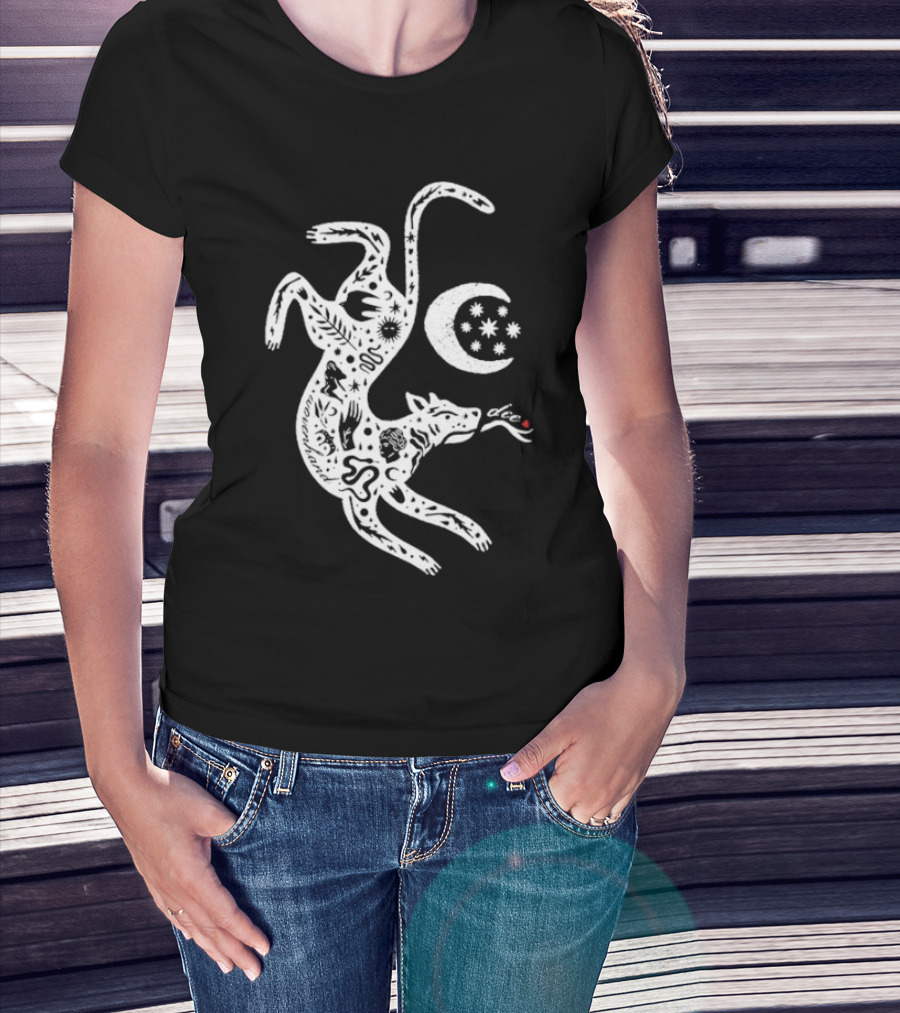 Wovenhand Alchemist Wolf With Stars And Crescent Moon T-Shirt