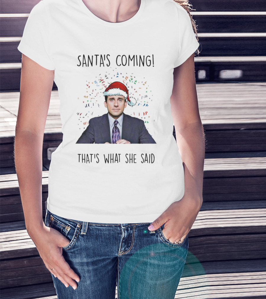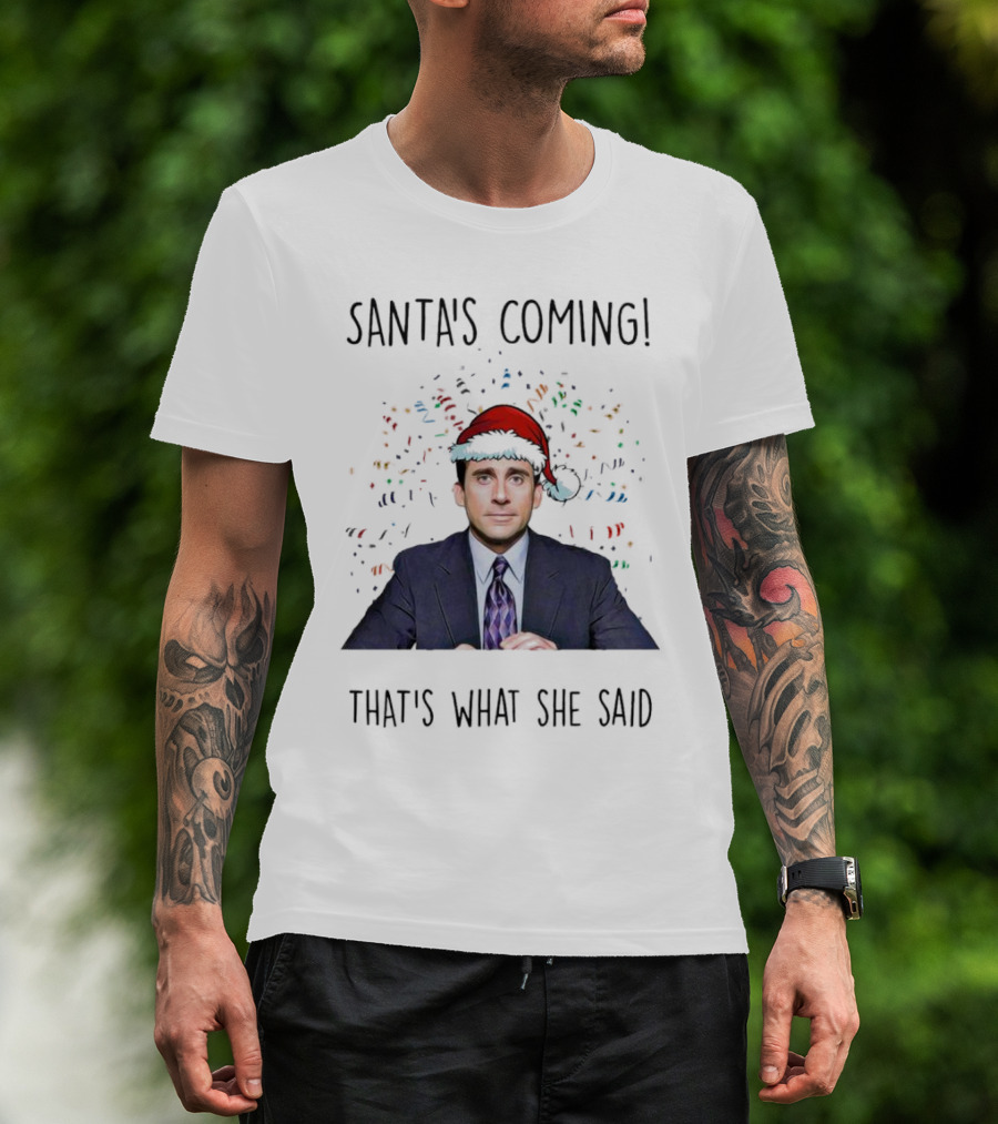 Santa's Coming That's What She Said Michael Scott Christmas Hat Image T-Shirt