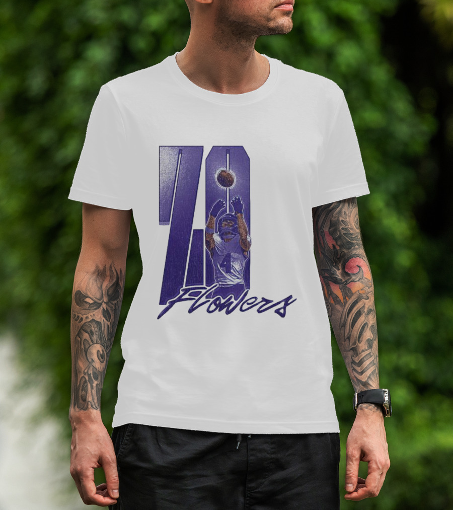 The Zay Flowers Baltimore Football Catching Number 4 T-shirt is designed for everyday wear and a consistent fit. Fabric is pre-shrunk ring-spun cotton with durable stitching. See the size chart below for exact measurements.