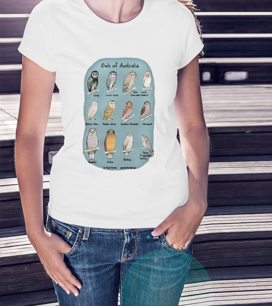How much will this Owls Of Australia Illustrated Guide Featuring Sooty Lesser Sooty Australian Masked Eastern Barn Eastern Grass Southern Boobook Powerful Rufous Barking Barn Owl by Pete Pascoe shirt shrink?