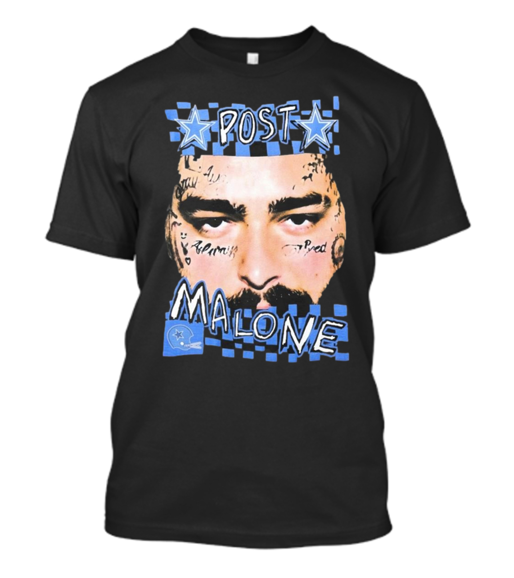 Post Malone Dallas Cowboys Blue Star Tattoo Face T-Shirt