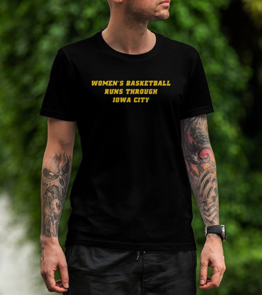 The Women's Basketball Runs Through Iowa City T-shirt is designed for everyday wear and a consistent fit. Fabric is pre-shrunk ring-spun cotton with durable stitching. See the size chart below for exact measurements.