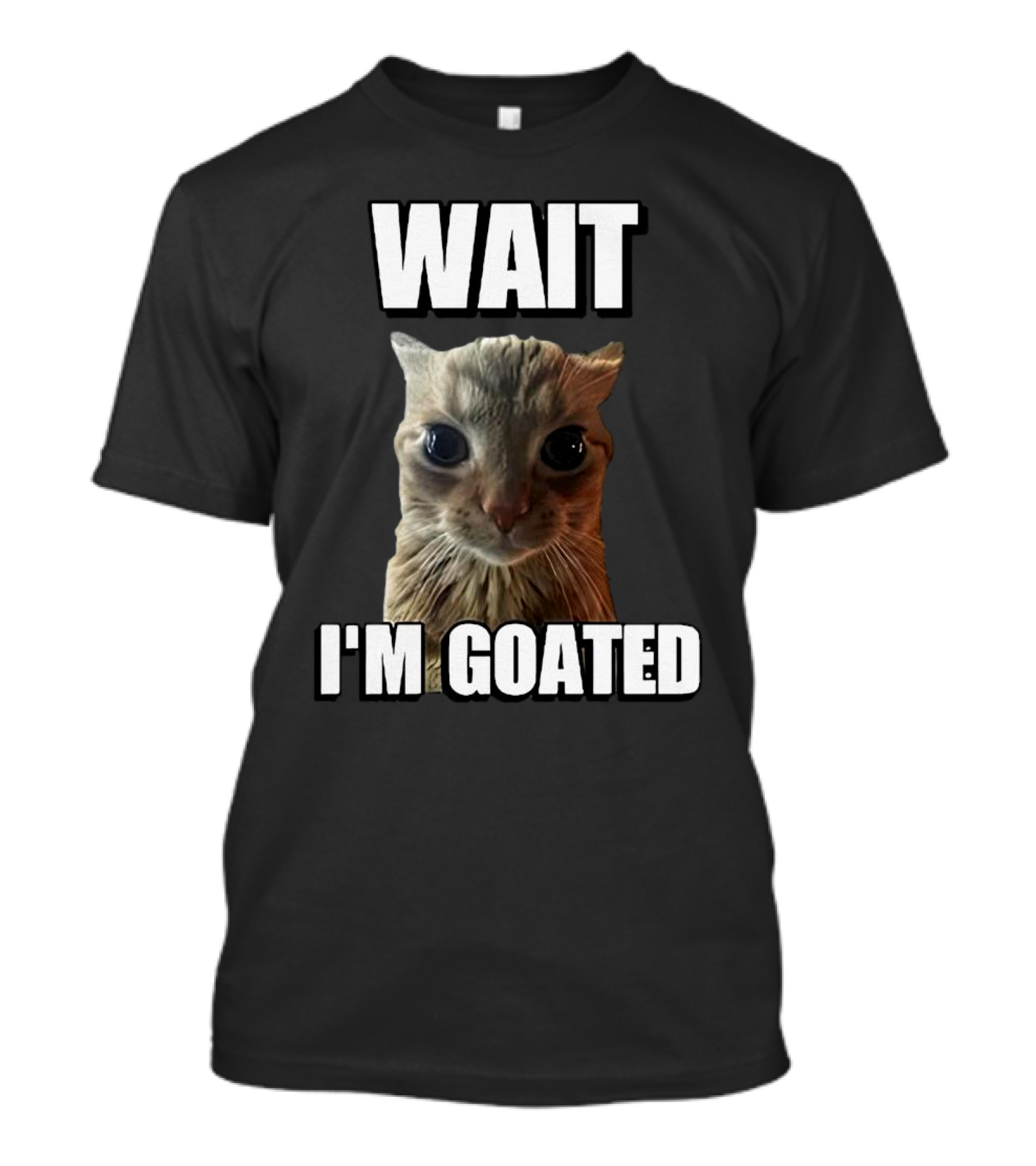 The WAIT I'M GOATED Cat Meme T-shirt is designed for everyday wear and a consistent fit. Fabric is pre-shrunk ring-spun cotton with durable stitching. See the size chart below for exact measurements.