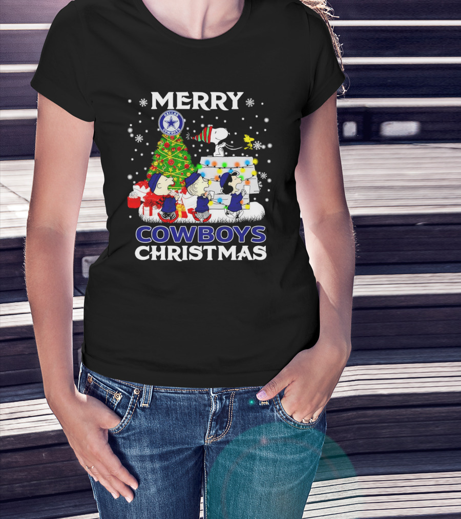 Merry Dallas Cowboys Peanuts Characters Christmas T-Shirt