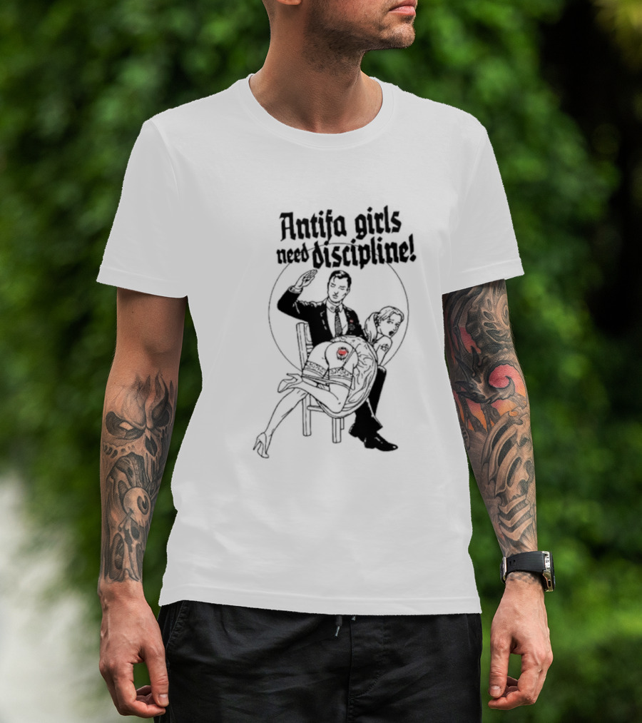 Antifa Girls Need Discipline Retro Style Illustration With Heart Detail T-Shirt