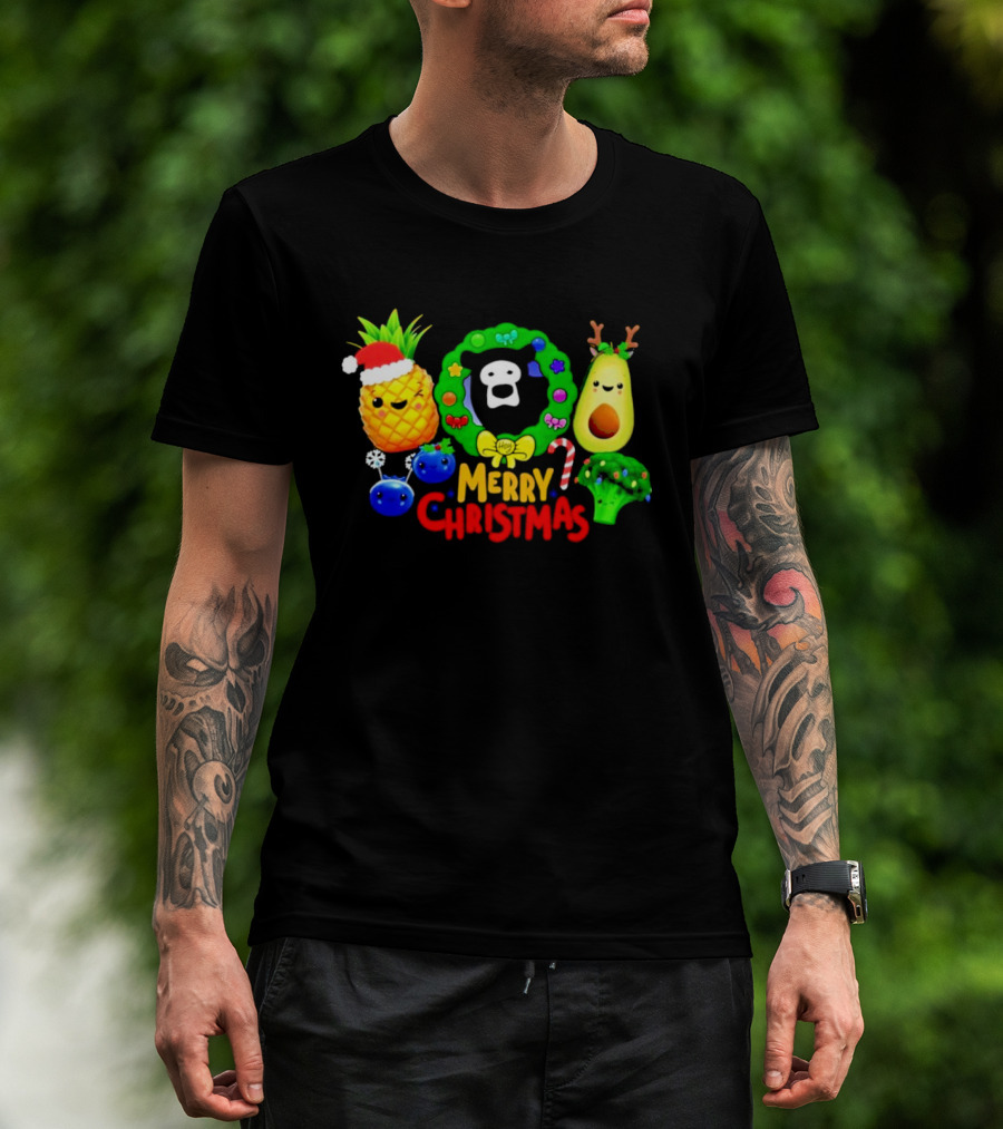 Hey Bear Sensory Merry Christmas Pineapple Avocado Broccoli Wreath T-Shirt