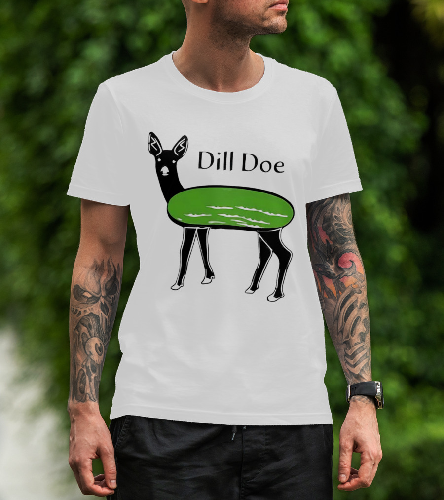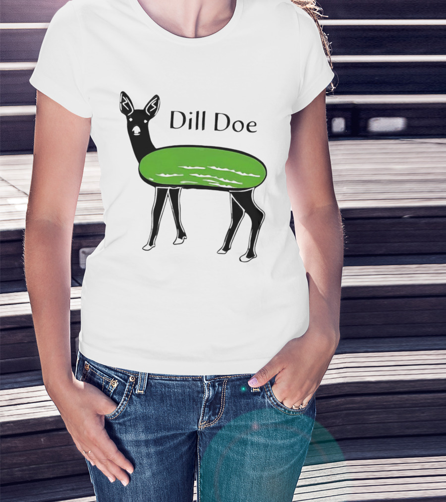 The Dill Doe Deer Pickle Pun T-shirt is designed for everyday wear and a consistent fit. Fabric is pre-shrunk ring-spun cotton with durable stitching. See the size chart below for exact measurements.