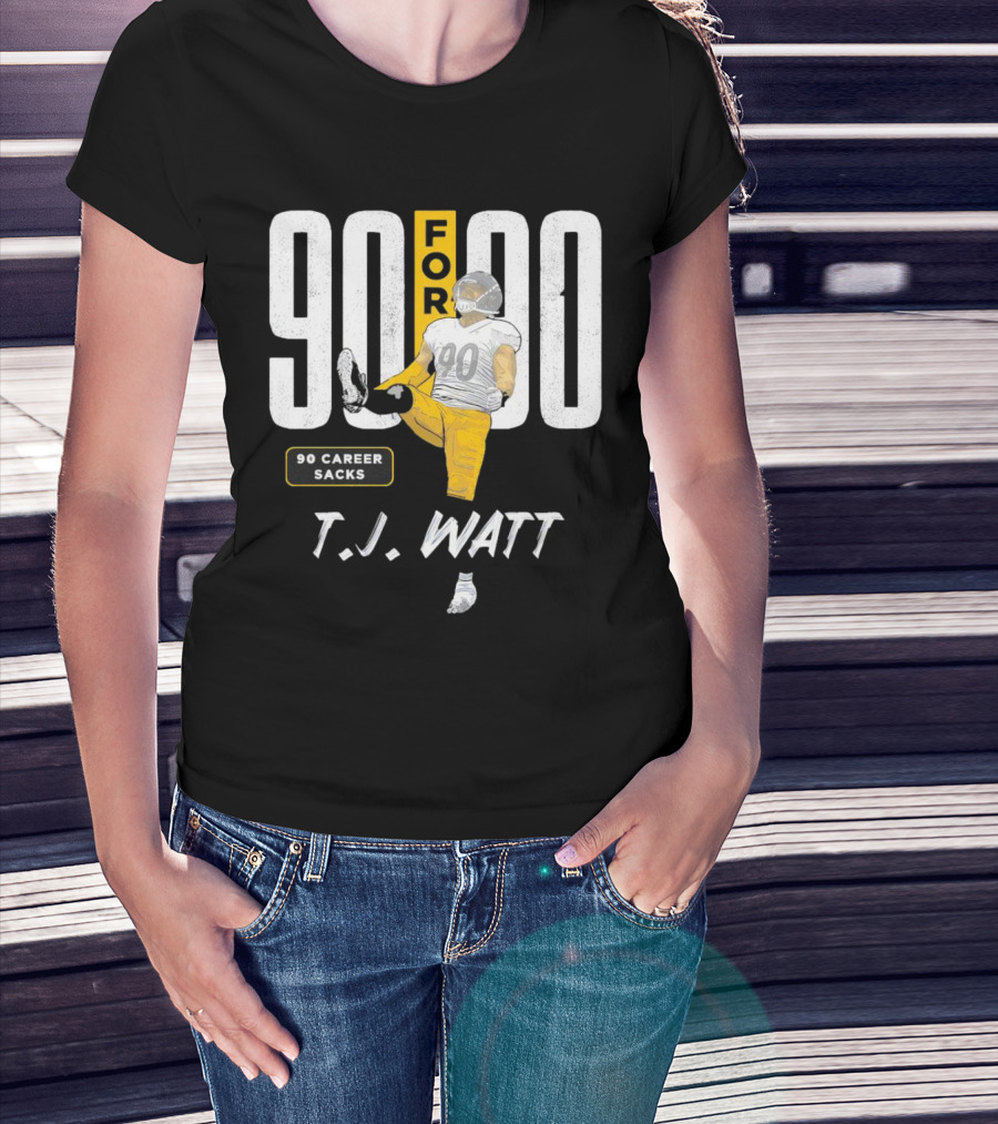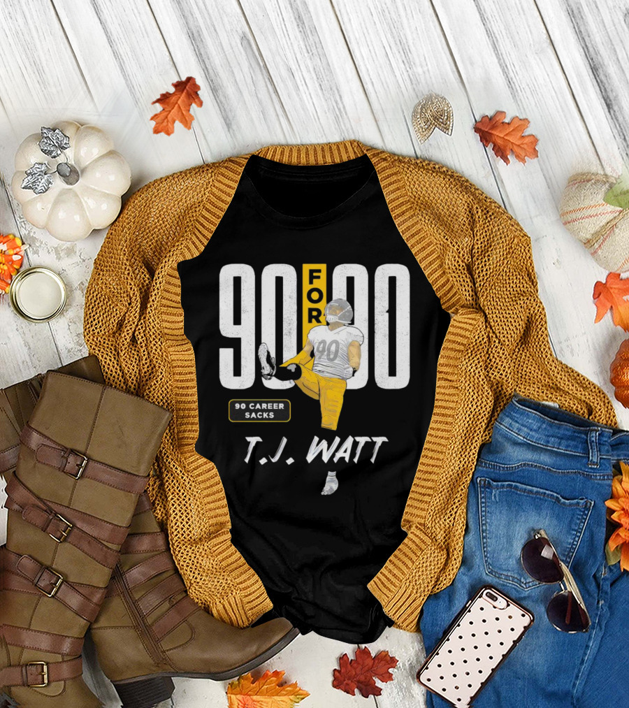T.J. Watt 90 For 90 Career Sacks Pittsburgh Steelers Football Cartoon T-Shirt