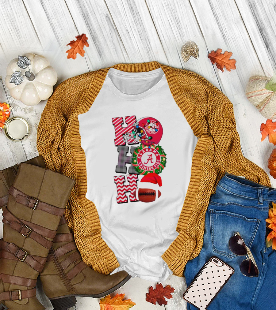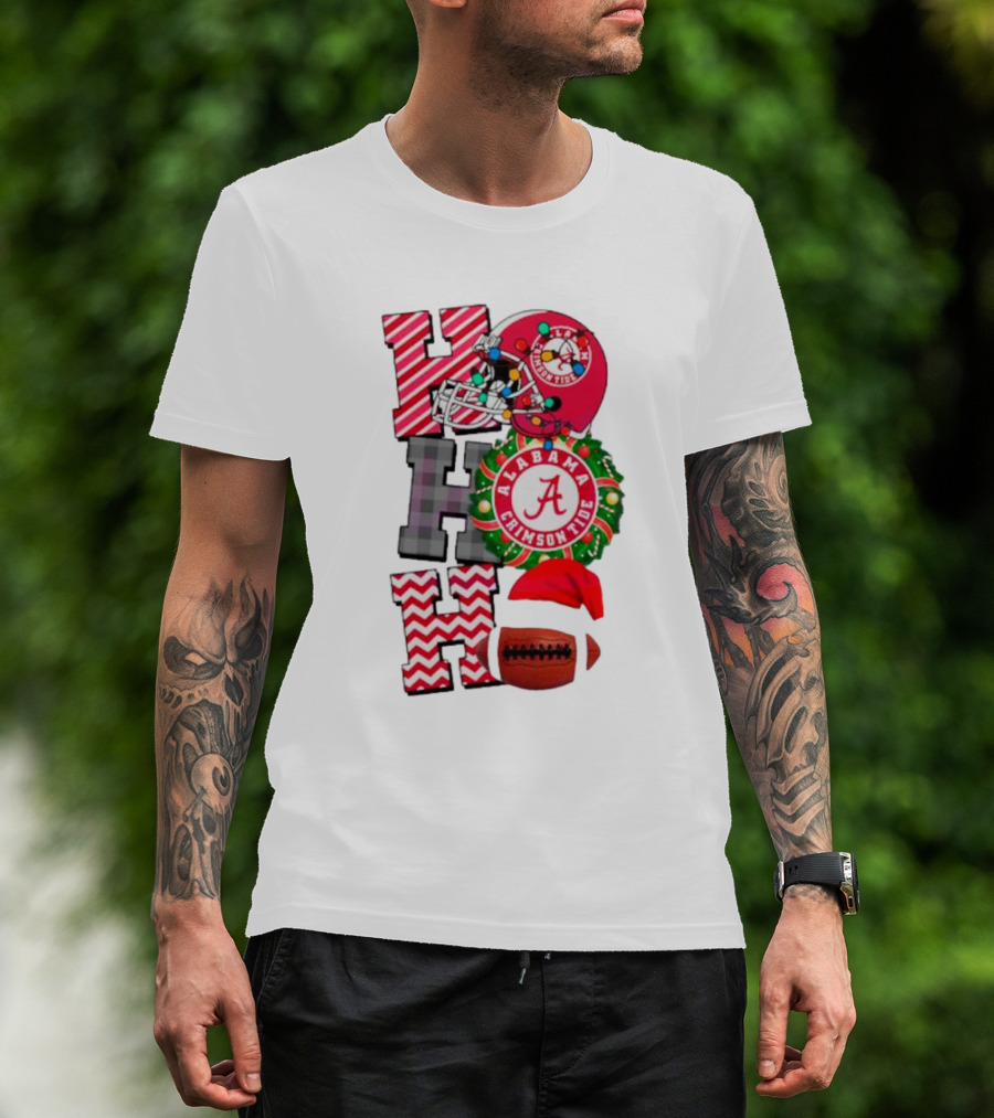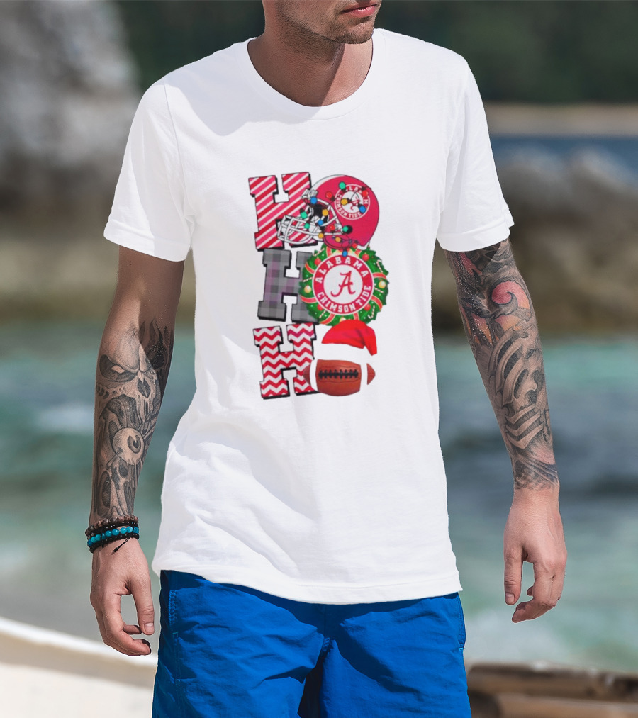 Alabama Crimson Tide Football Christmas Ho Ho Ho Santa Hat Wreath Football Helmet T-Shirt