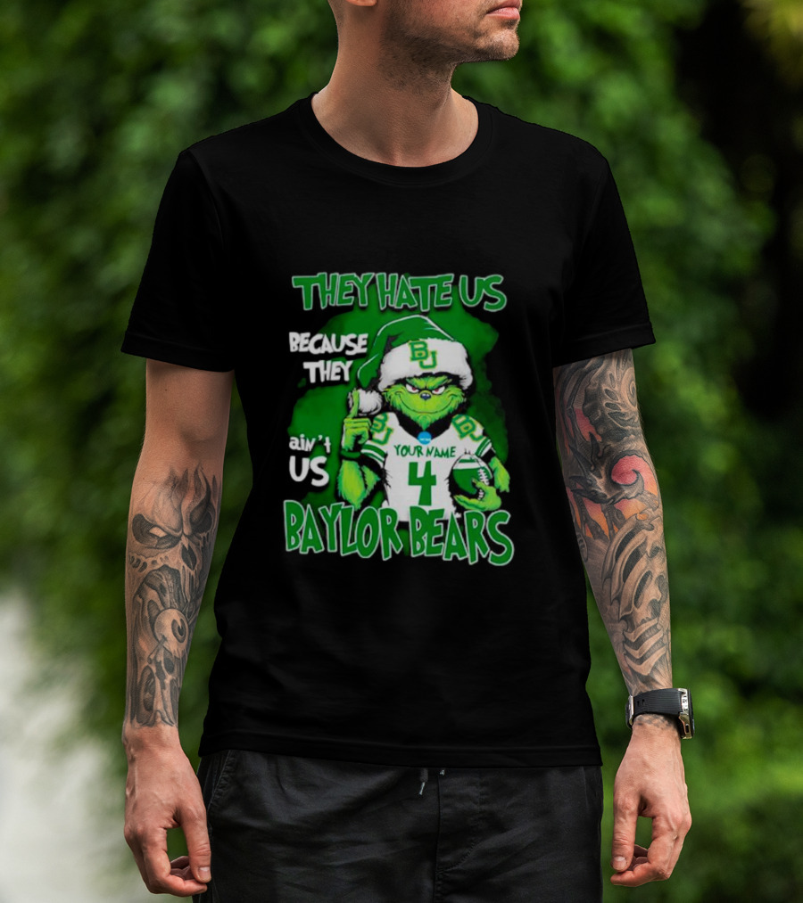 Grinch Santa Baylor Bears Football They Hate Us Because They Ain’t Us Custom Your Name And Number T-Shirt