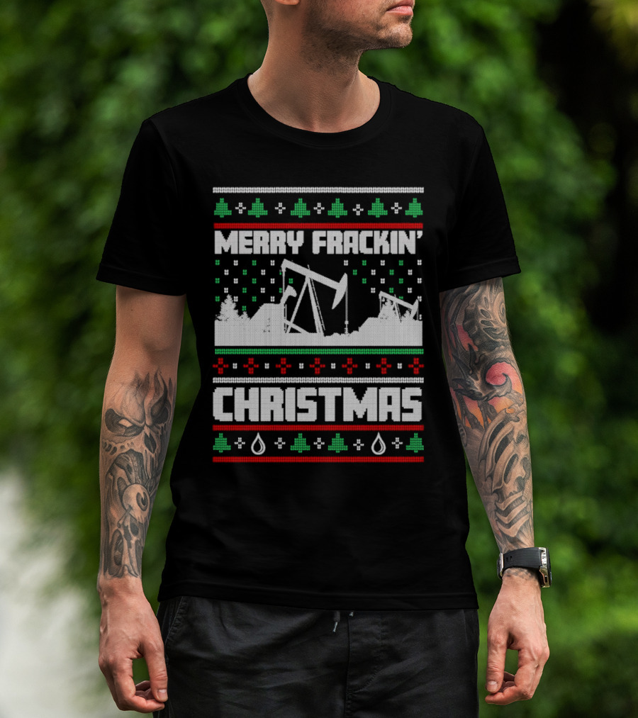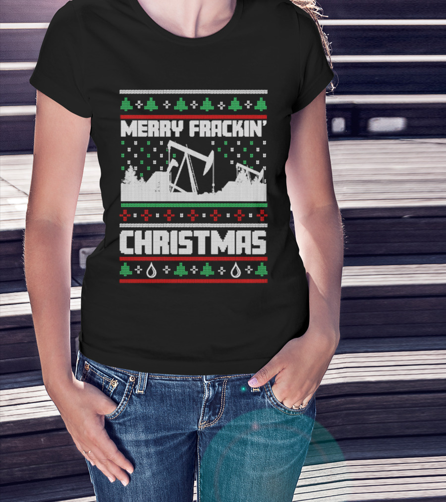 Merry Frackin’ Christmas Ugly Sweater Oil Rigs And Trees T-Shirt