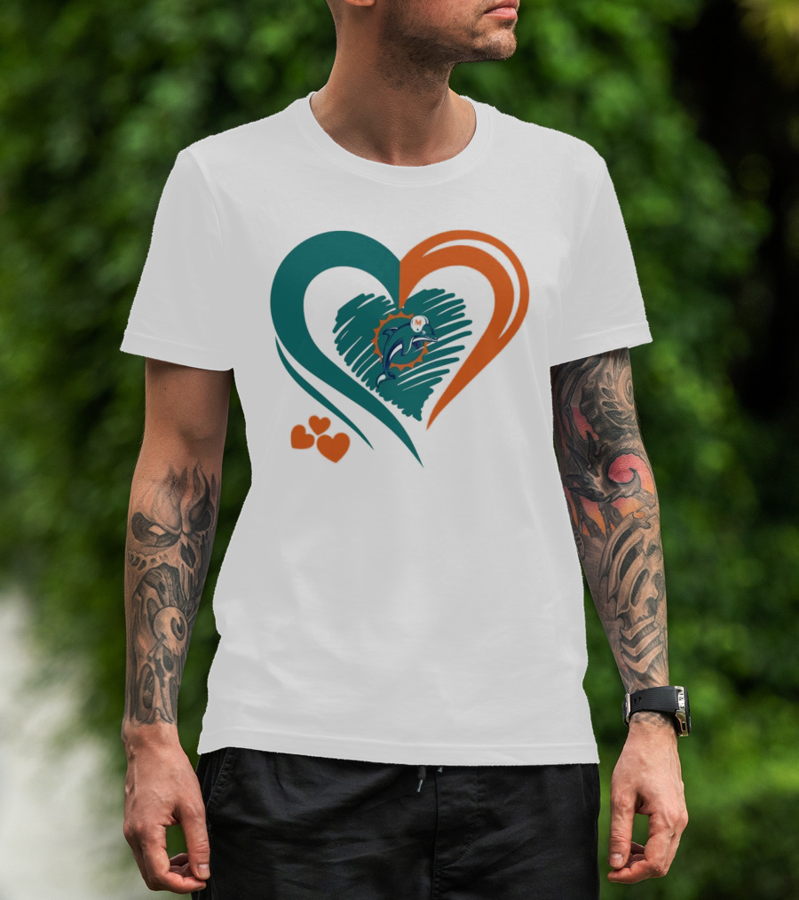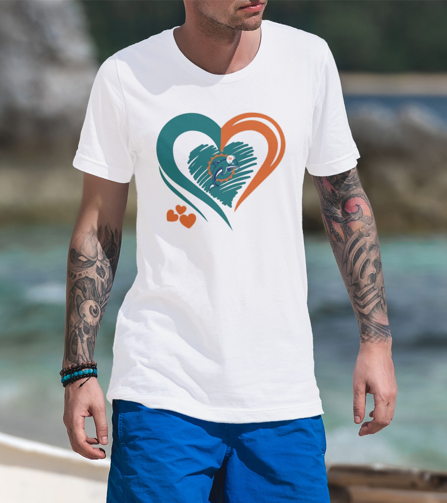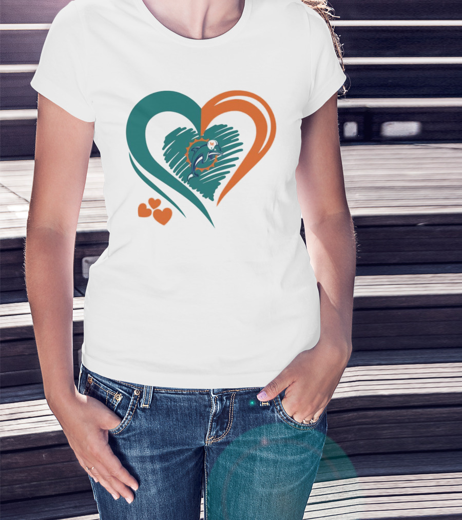 Miami Dolphins Heart Shape Emblem With Three Small Hearts T-Shirt