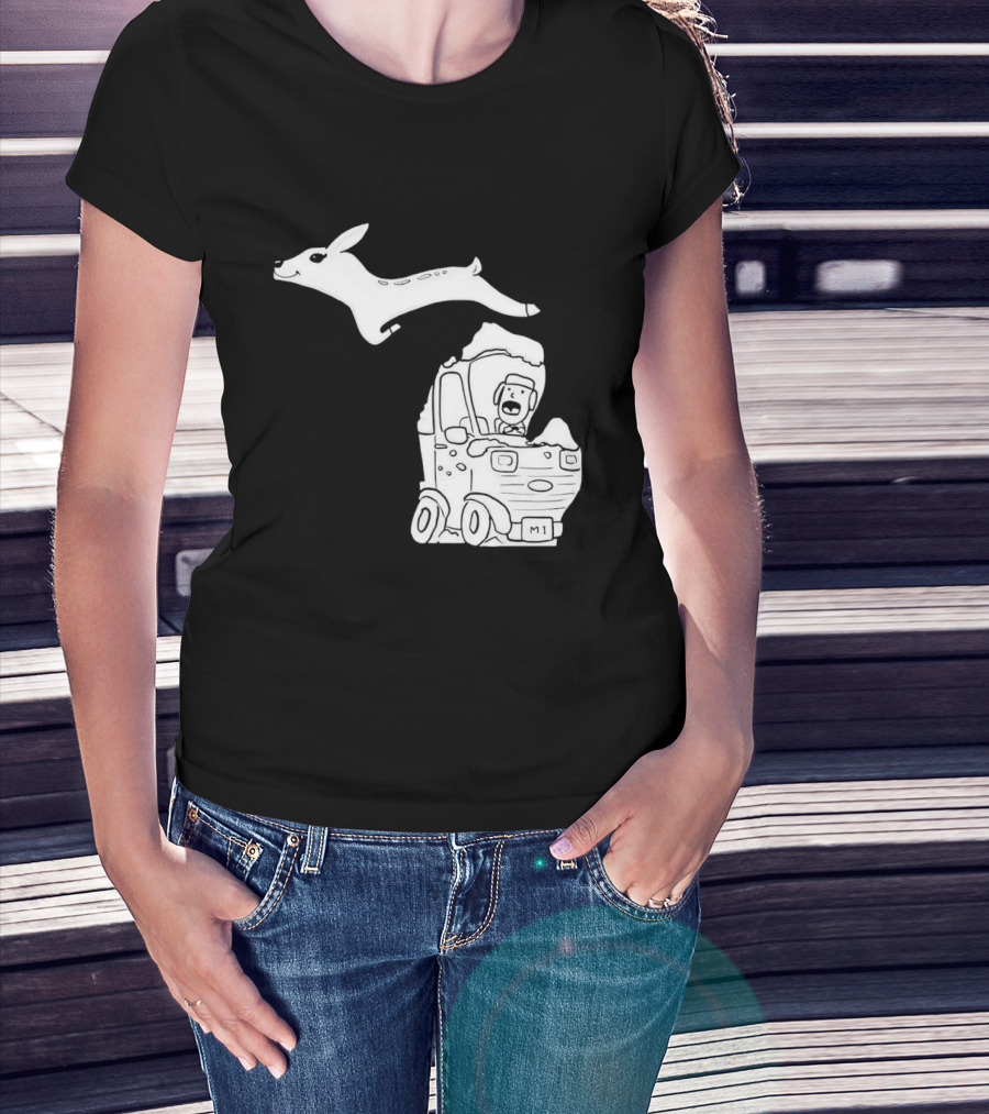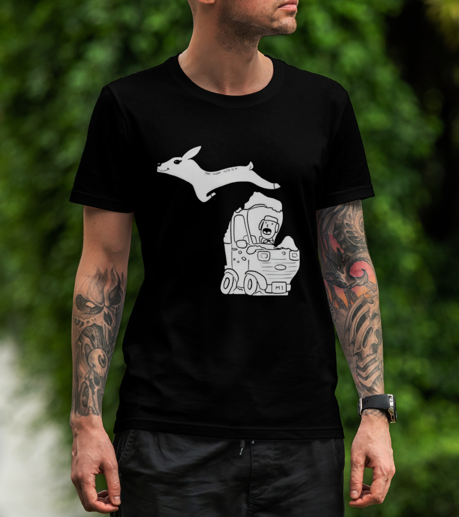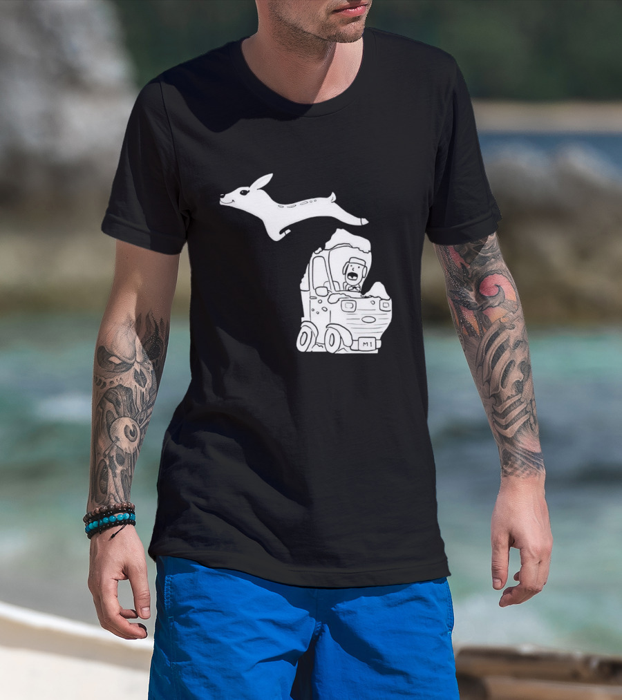Michigan Deer Leaping Over Snowy Car With Driver T-Shirt