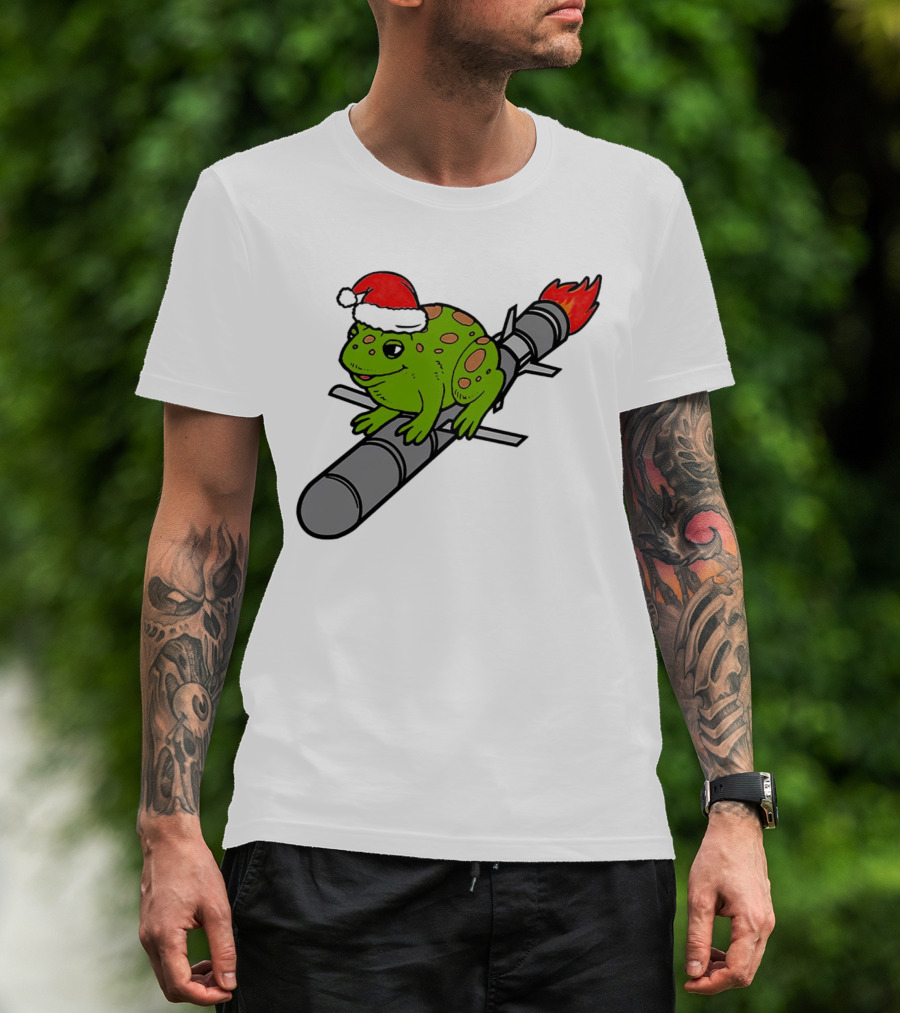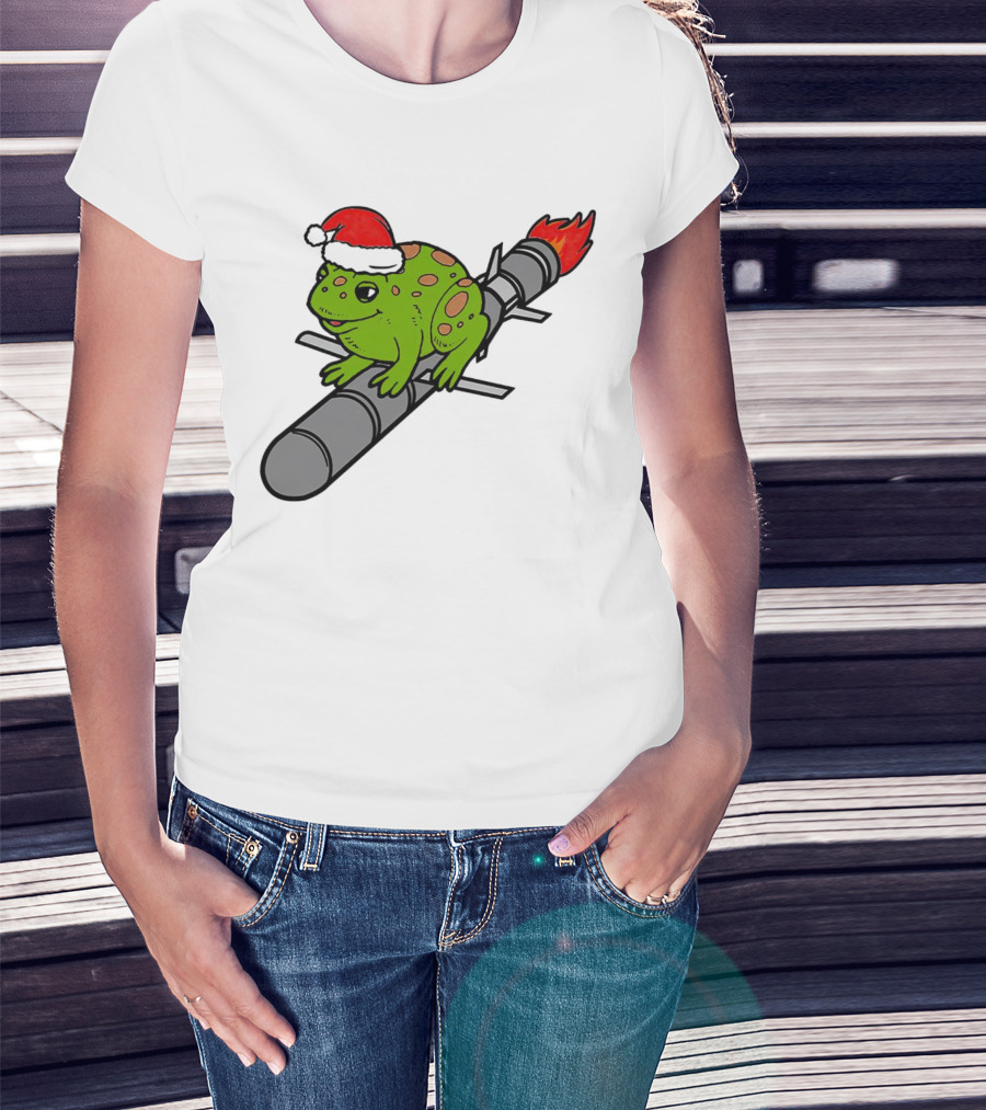 Missile Toad Christmas Frog With Santa Hat Riding A Rocket T-Shirt