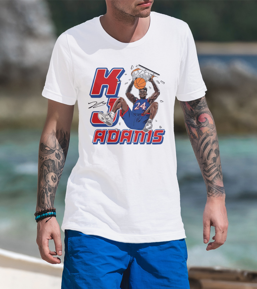 KJ Adams Kansas Jayhawks Dunking Basketball Player 24 Signature T-Shirt