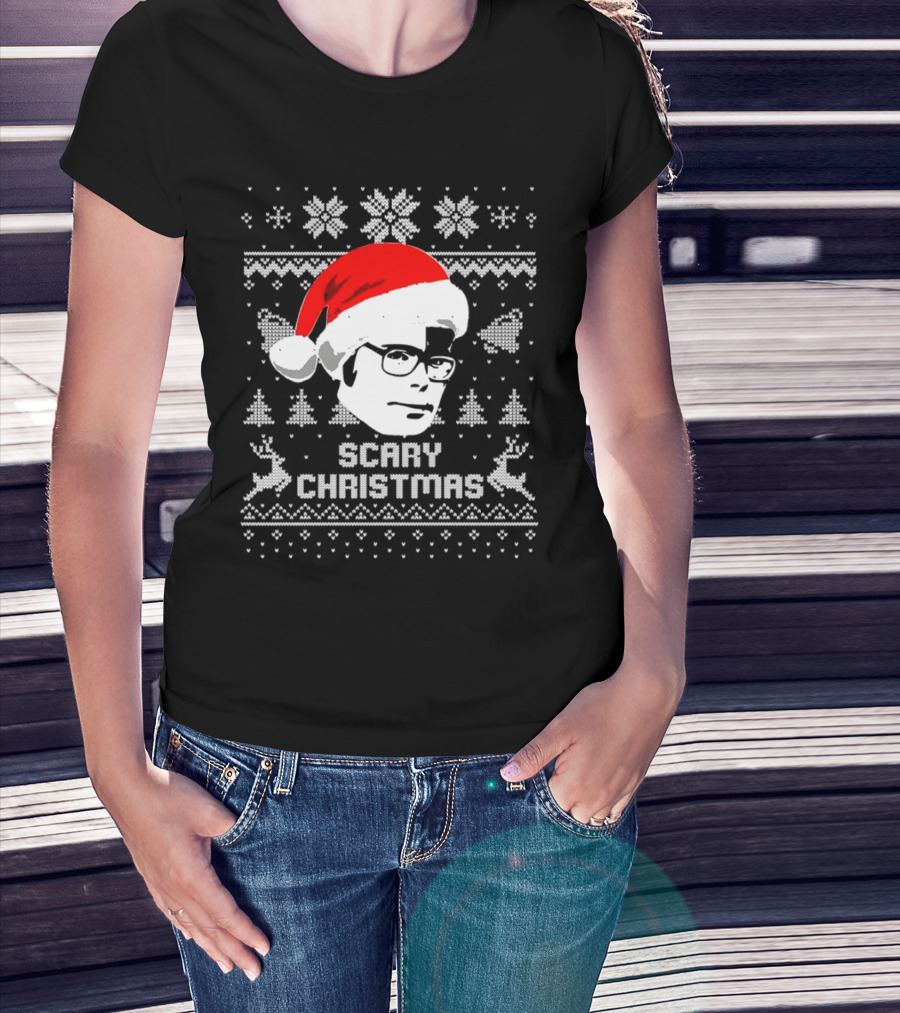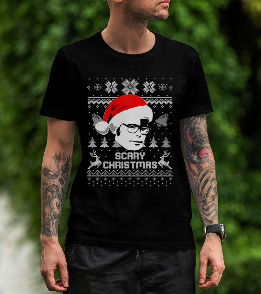 Stephen King Scary Christmas Ugly Sweater Santa Hat Reindeer Snowflakes T-Shirt