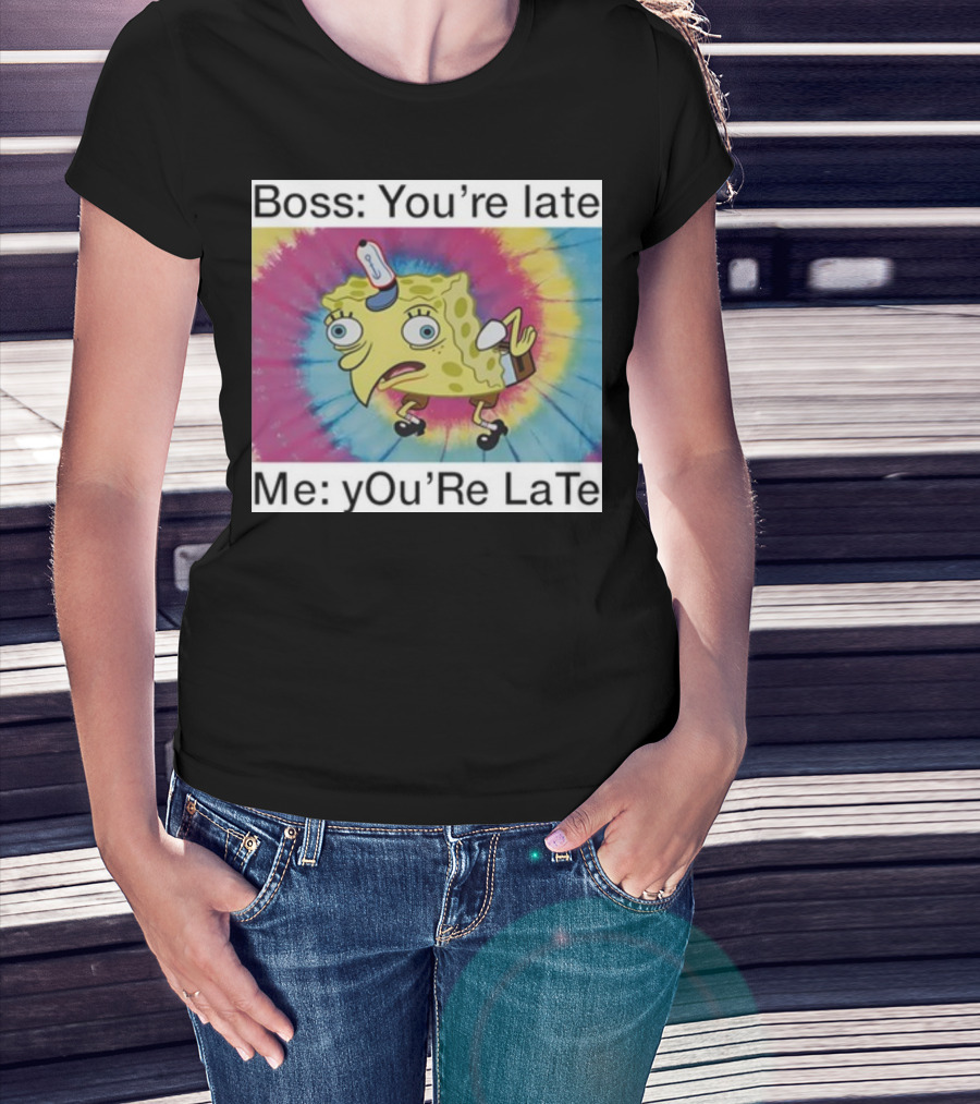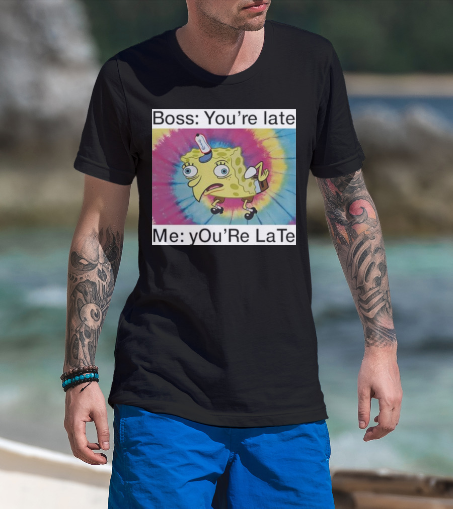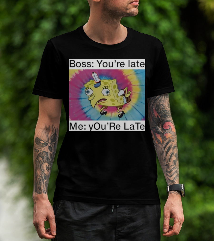 Boss You’re Late Me You’re Late SpongeBob Tie-Dye Mocking Meme T-Shirt
