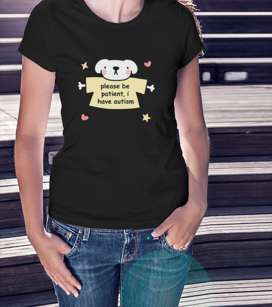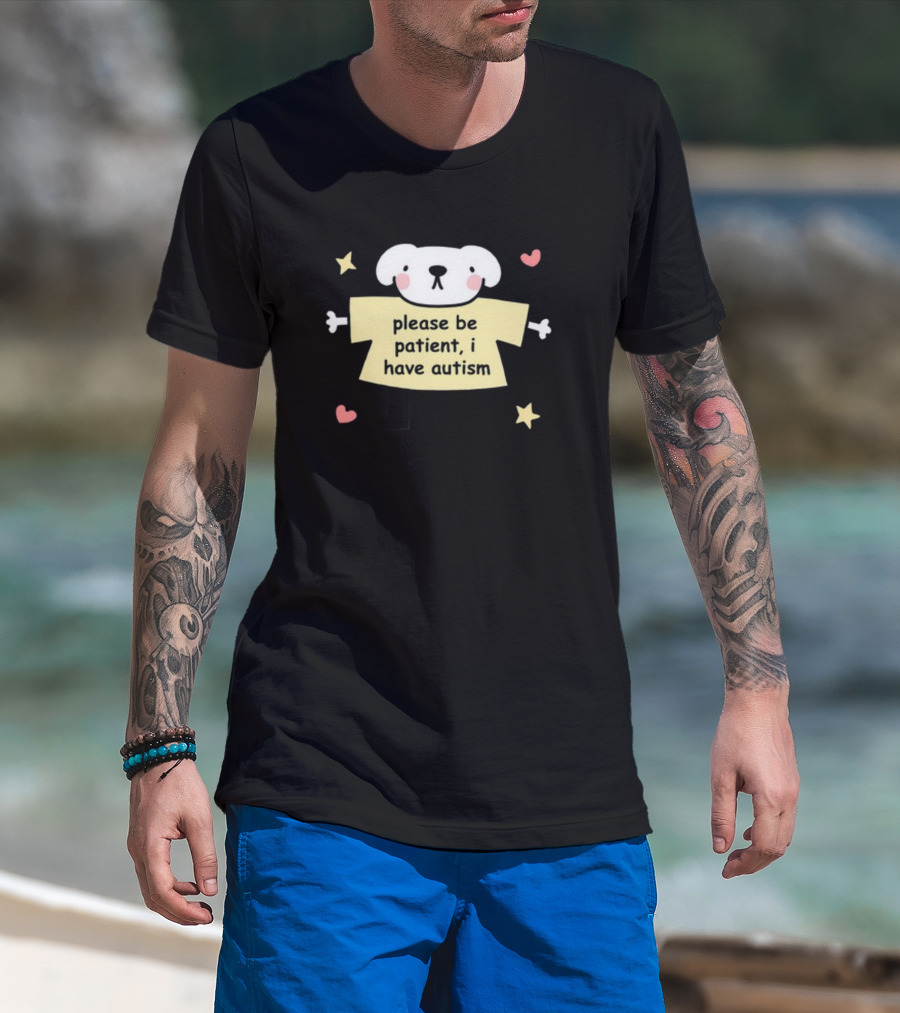 Please Be Patient I Have Autism Dog With Hearts And Stars T-Shirt
