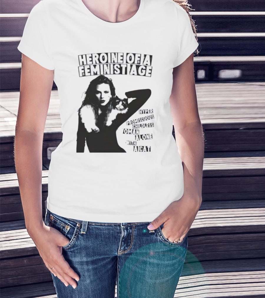 Heroine Of A Feminist Age Hyper Promiscuous Childless Woman Alone With A Cat T-Shirt