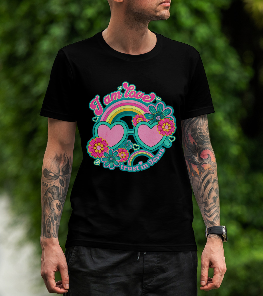 I Am Love Trust In Jesus Rainbow Hearts Flowers T-Shirt
