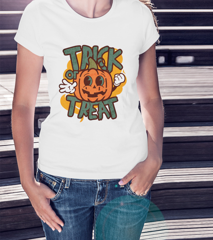 The Trick or Treat Pumpkin Character T-shirt is designed for everyday wear and a consistent fit. Fabric is pre-shrunk ring-spun cotton with durable stitching. See the size chart below for exact measurements.