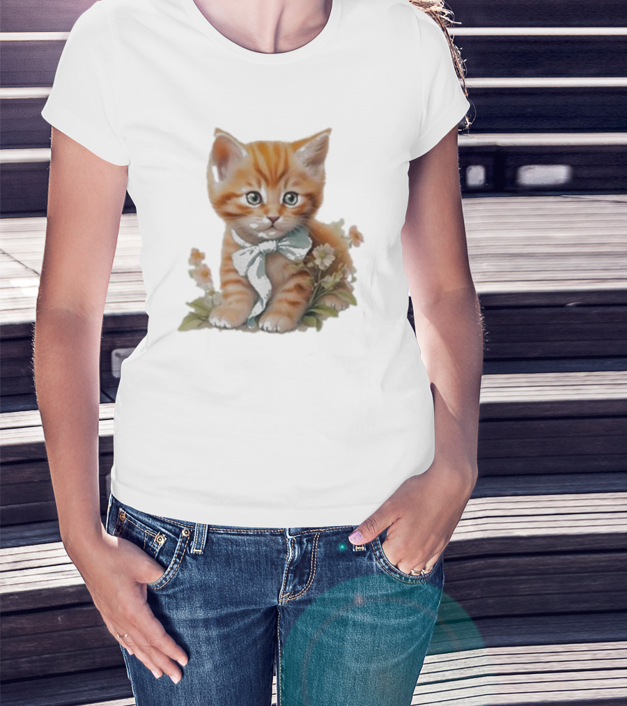 Beabadoobee Cat Kimchi Miso Kitten With Bow And Flowers T-Shirt