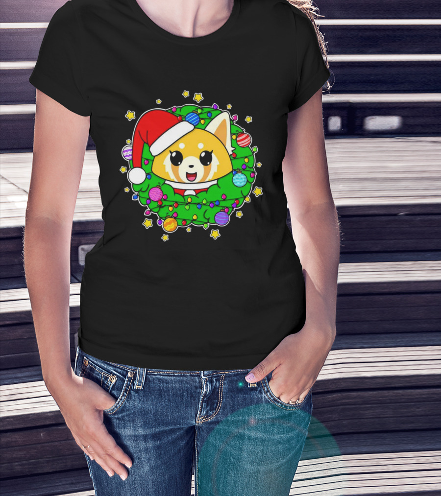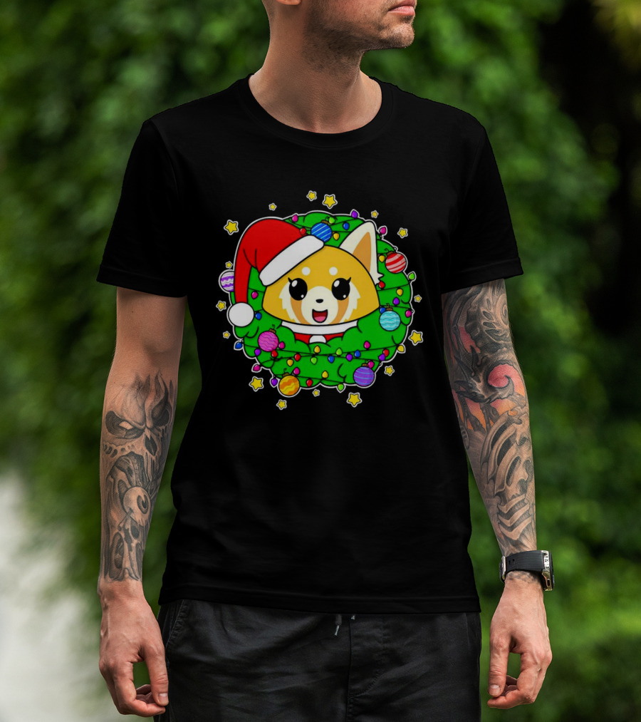 The Aggressively Merry Christmas Kawaii Red Panda with Santa Hat in Holiday Wreath T-shirt is designed for everyday wear and a consistent fit. Fabric is pre-shrunk ring-spun cotton with durable stitching. See the size chart below for exact measurements.