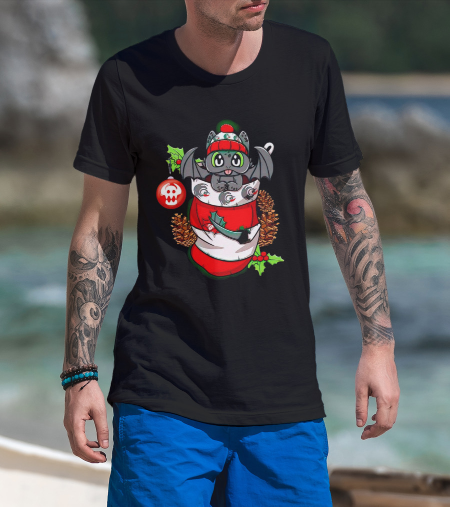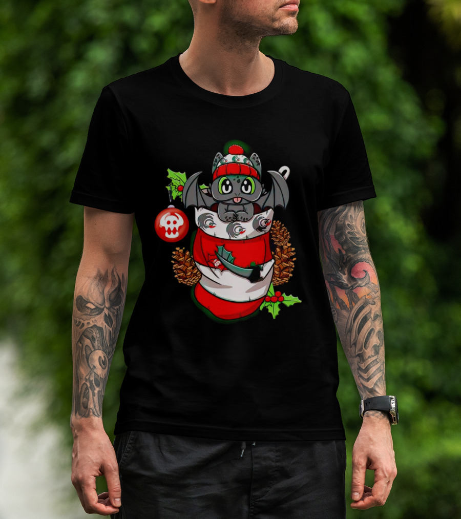 Baby Dragon Holiday Stocking With Skull Ornament And Pinecones T-Shirt