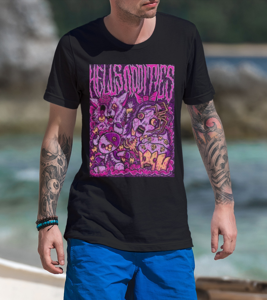 The Hells Oddities Creepy Doll Zombie Cupcake Cat Monster Bits N' Pieces T-shirt is designed for everyday wear and a consistent fit. Fabric is pre-shrunk ring-spun cotton with durable stitching. See the size chart below for exact measurements.