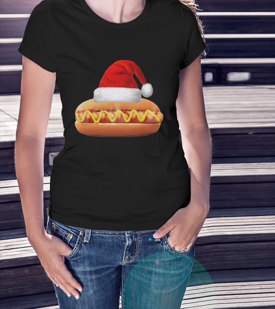Santa Hat Hot Dog Christmas Family Dinner T-Shirt