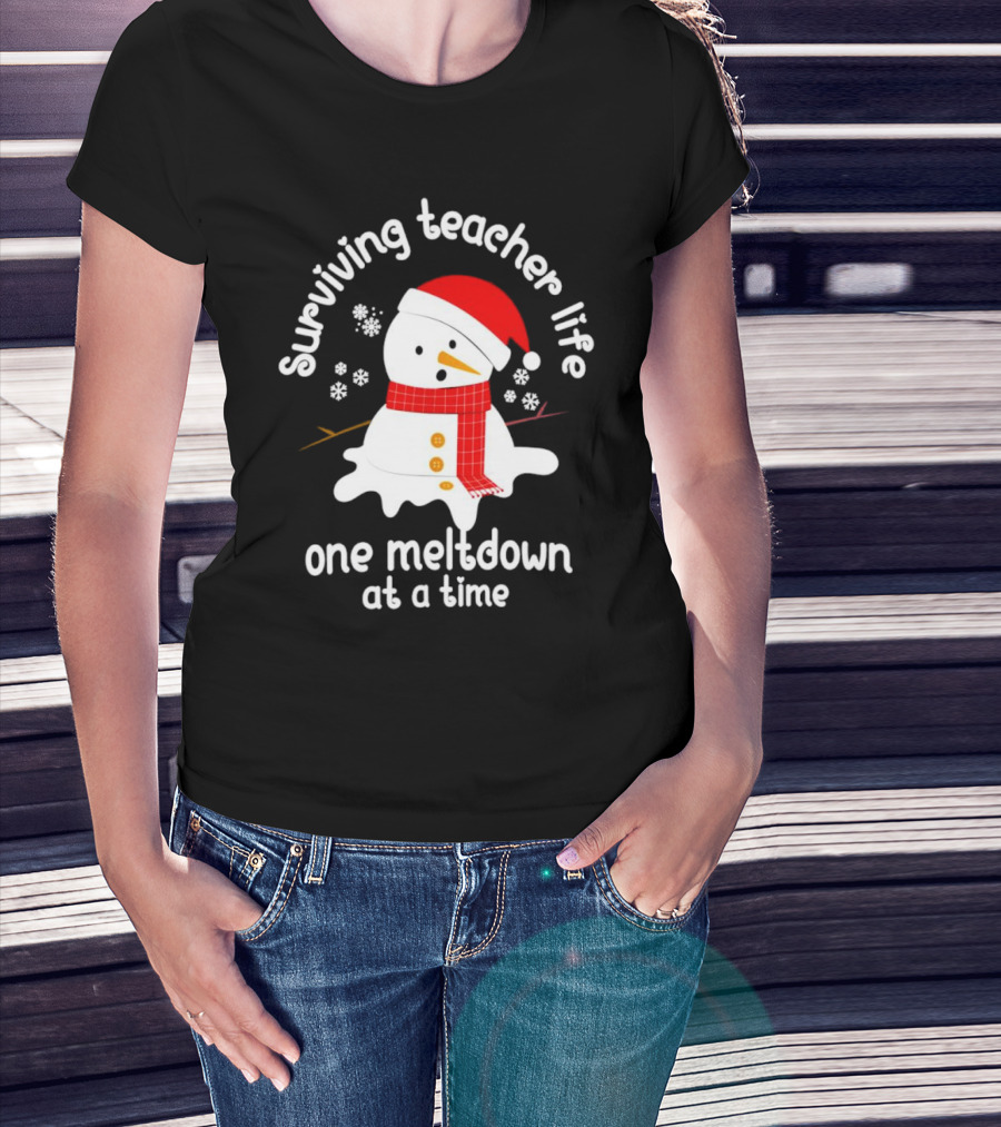 Surviving Teacher Life Melting Snowman One Meltdown At A Time Christmas T-Shirt