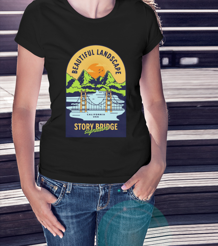 The Beautiful Landscape Story Bridge California USA Signature T-shirt is designed for everyday wear and a consistent fit. Fabric is pre-shrunk ring-spun cotton with durable stitching. See the size chart below for exact measurements.