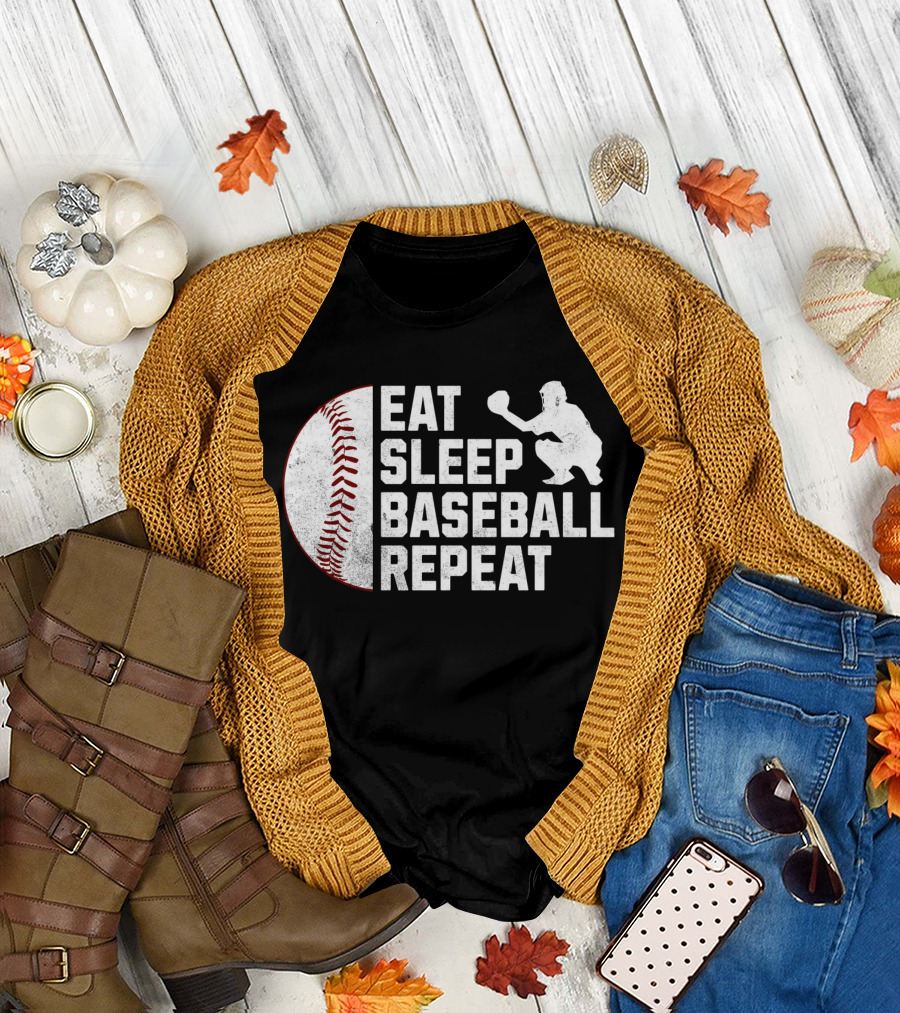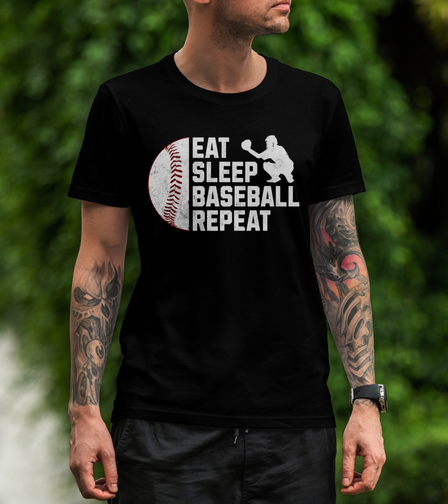 Eat Sleep Baseball Repeat Silhouette Catcher T-Shirt