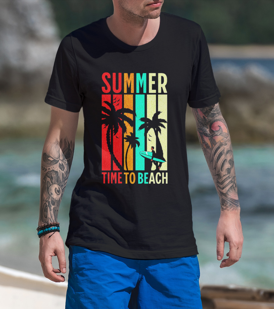 The SUMMER TIME TO BEACH T-shirt is designed for everyday wear and a consistent fit. Fabric is pre-shrunk ring-spun cotton with durable stitching. See the size chart below for exact measurements.