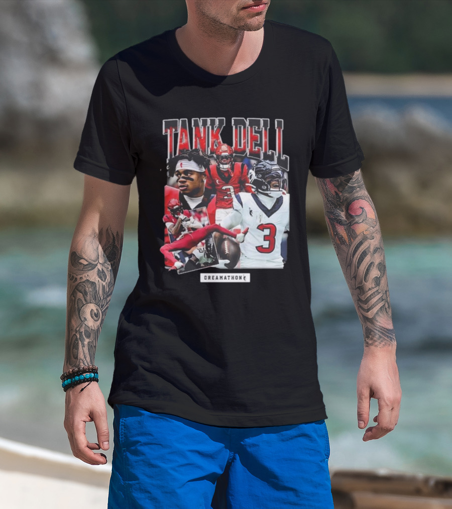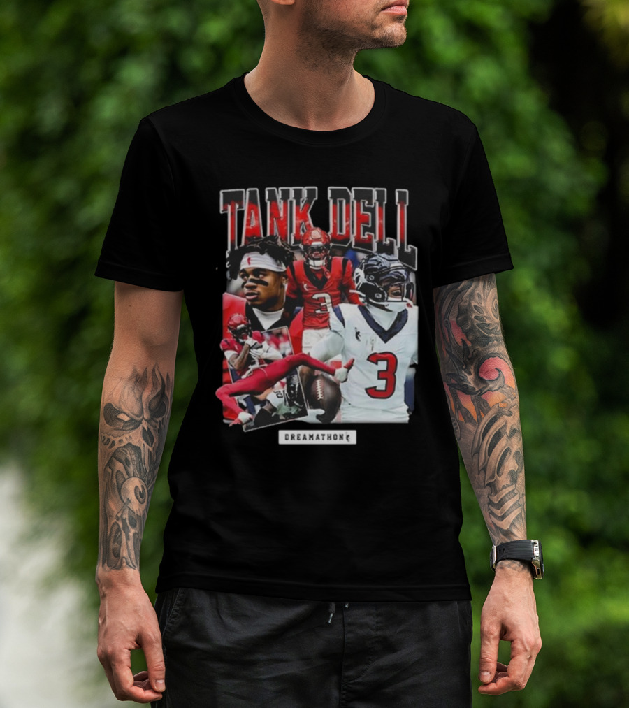 The Tank Dell Dreamathon Football Montage T-shirt is designed for everyday wear and a consistent fit. Fabric is pre-shrunk ring-spun cotton with durable stitching. See the size chart below for exact measurements.