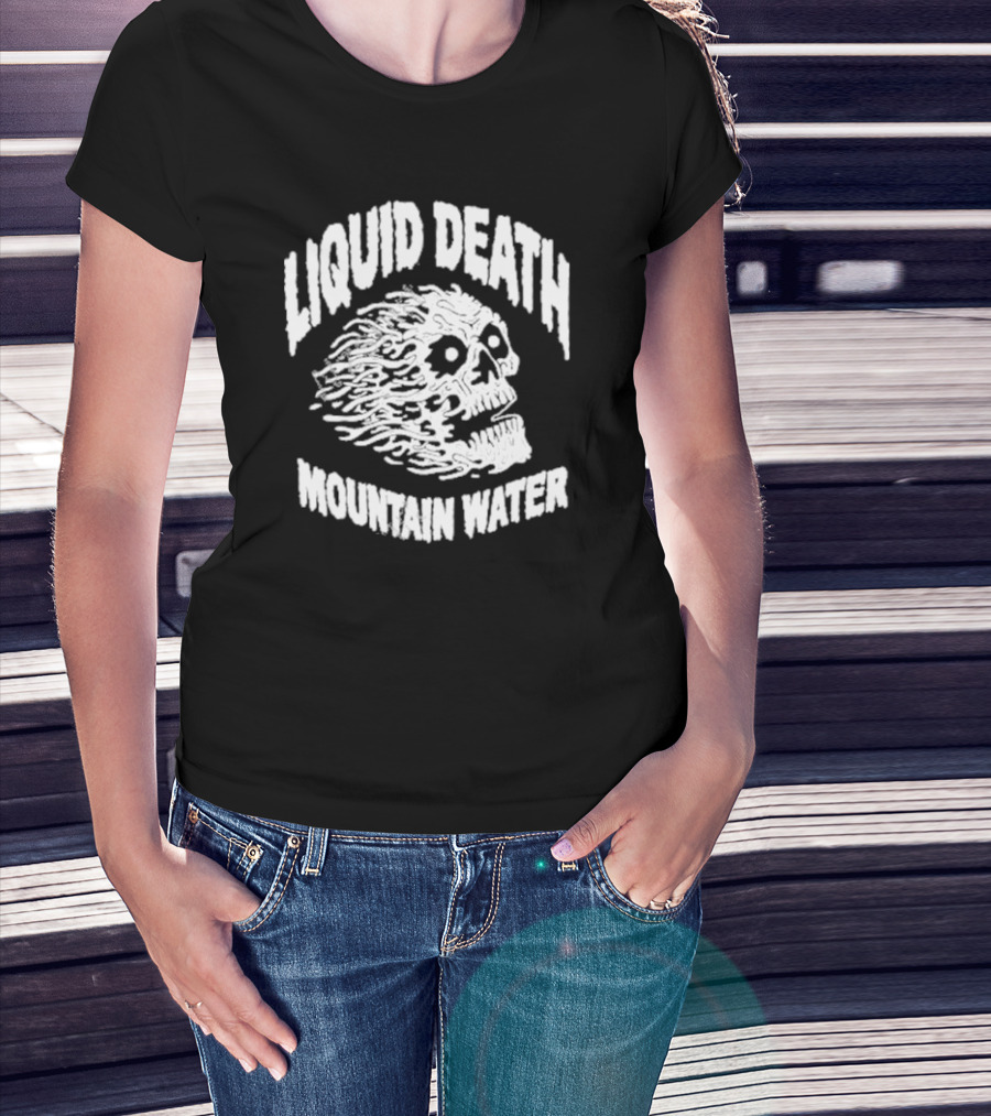 The Liquid Death Mountain Water Skull T-shirt is designed for everyday wear and a consistent fit. Fabric is pre-shrunk ring-spun cotton with durable stitching. See the size chart below for exact measurements.